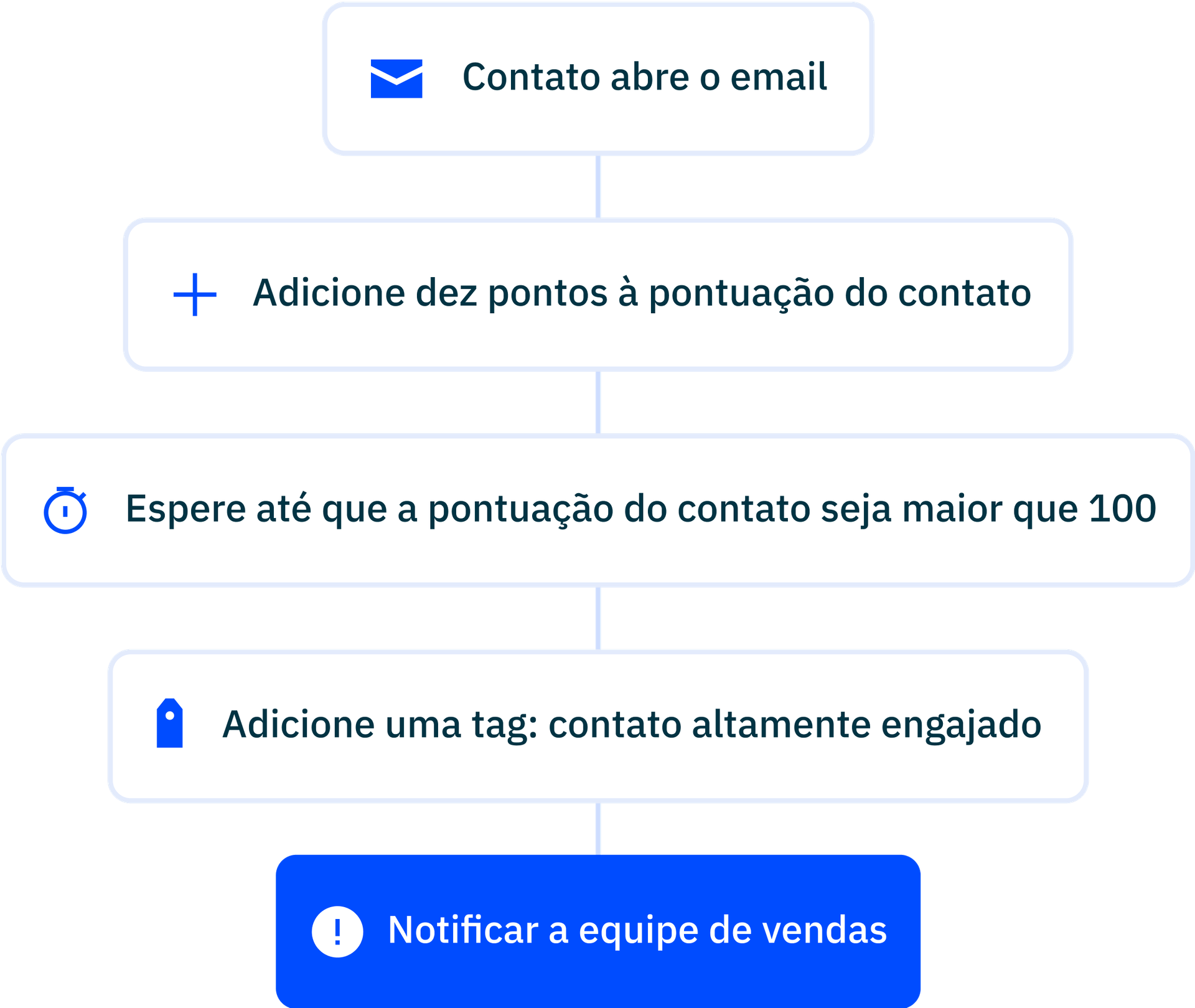 Não há dois leads iguais. Um deles pode estar pronto para comprar hoje, enquanto o outro pode precisar de conteúdo e estímulos consistentes para eventualmente fazer uma compra. Ao contar com a ajuda de uma ferramenta de automação de marketing, você terá uma visão das ações realizadas por um cliente e concentrará sua atenção nos leads que estão prontos para comprar. A automação torna o lead scoring muito mais fácil.