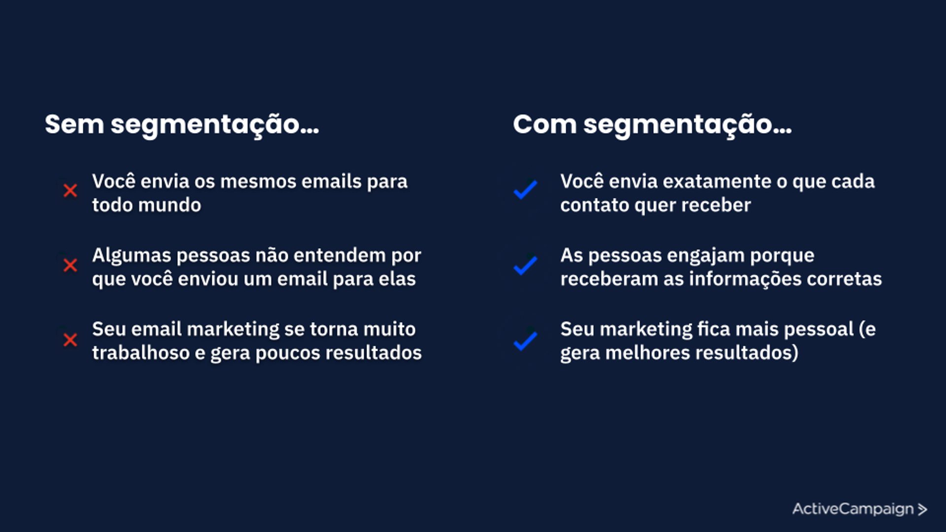 A segmentação do público evita muitos cancelamentos de inscrição (e MUITA irritação para seus clientes).
