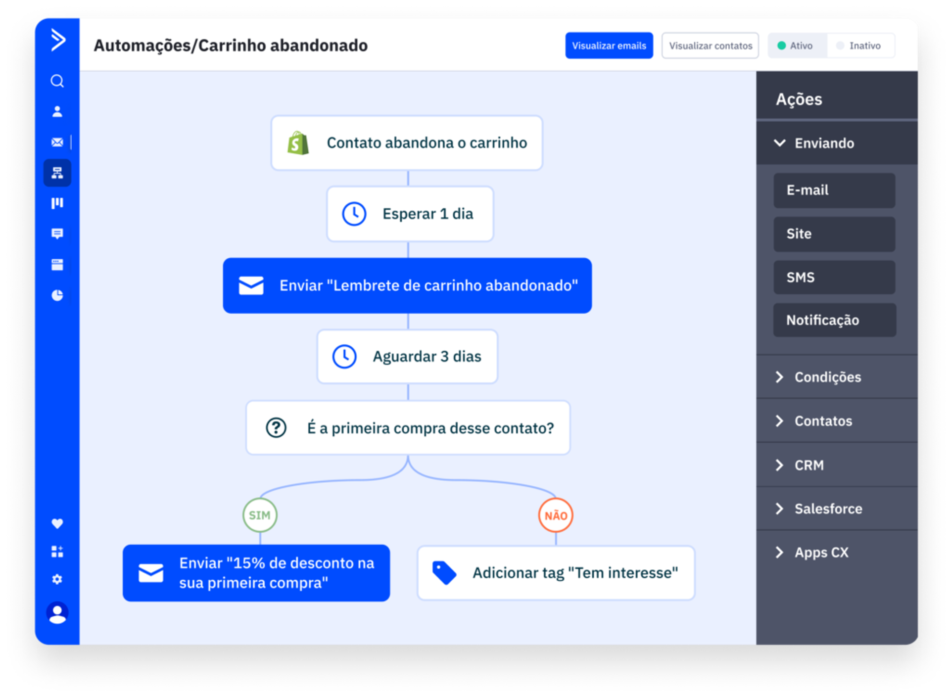 O que mais me agrada é a facilidade e a criação de automações dentro das campanhas. É intuitivo e segue o fluxo da lógica cotidiana.