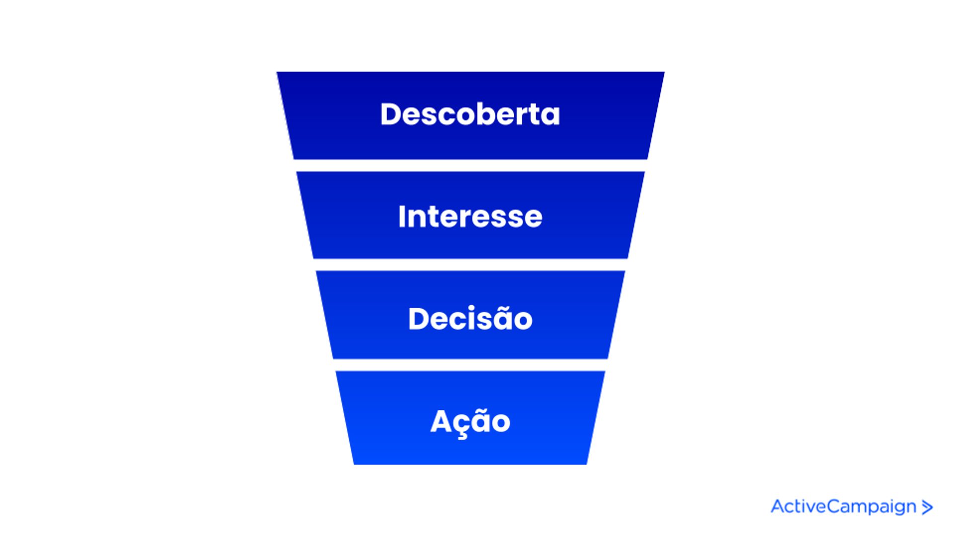 Quando profissionais de marketing mapeiam o funil de vendas, em geral, o modelo de funil de vendas mais usado é o de Descoberta, Interesse, Decisão e Ação (AIDA, na sigla em inglês). Veja a seguir o que normalmente acontece em cada um dos estágios do funil de vendas: