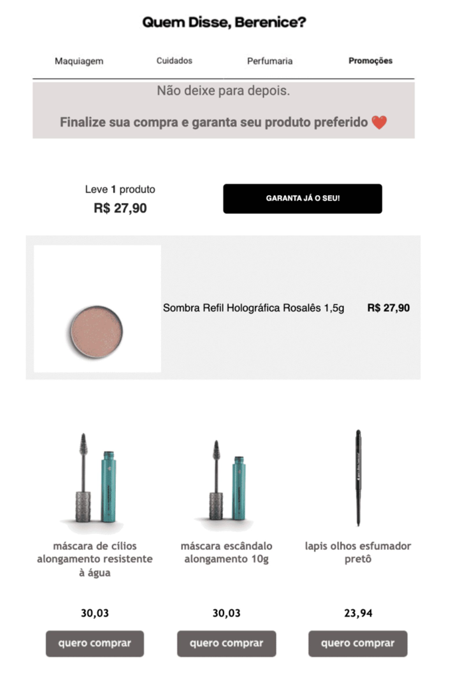 - O texto dá conta de trazer a urgência: "aproveite enquanto os itens abaixo ainda estão disponíveis";