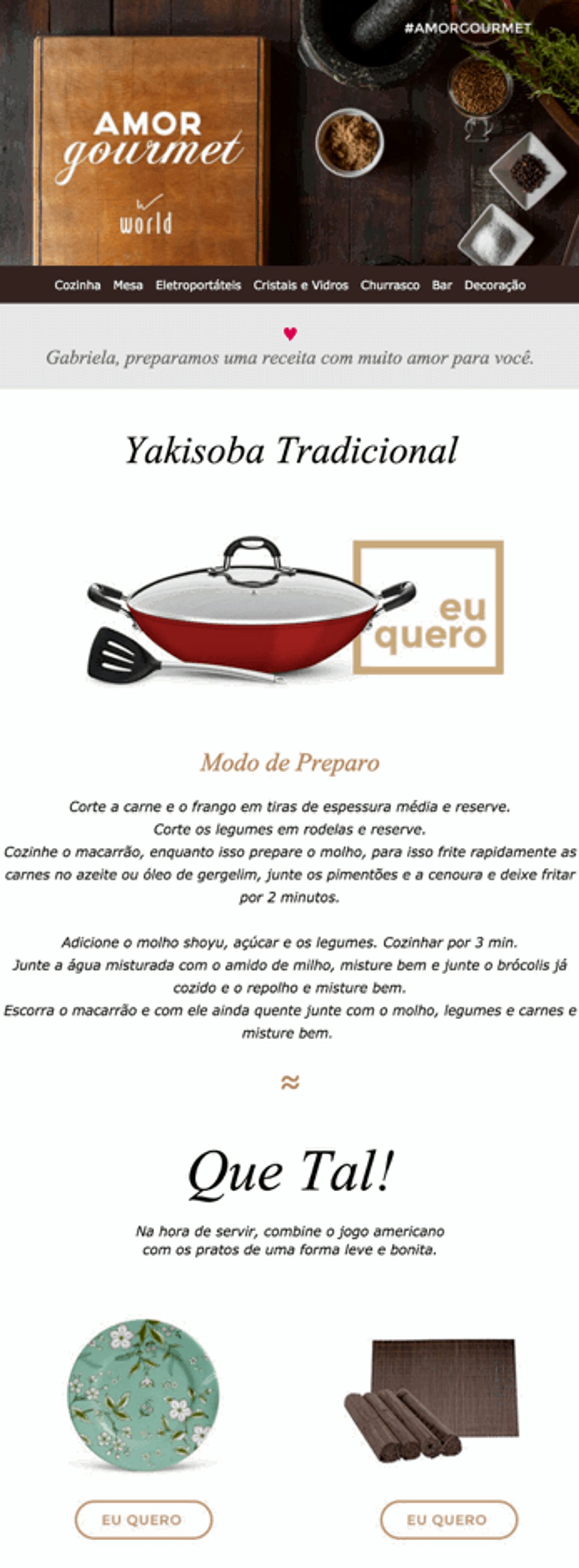 Essa newsletter promocional encontrou uma maneira muito criativa de anunciar seus produtos – utensílios para cozinha. Ela fornece uma receita e te mostra quais itens você precisará para cozinhar e servir esse prato.