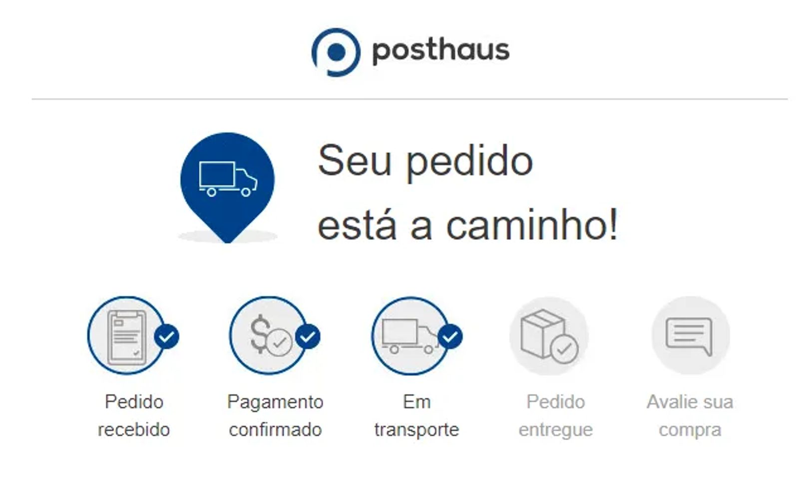 Um dos exemplos dos emails transacionais é essa de Posthaus. Alguns formatos comuns são emails de confirmação de inscrição ou de pagamento de um pedido.