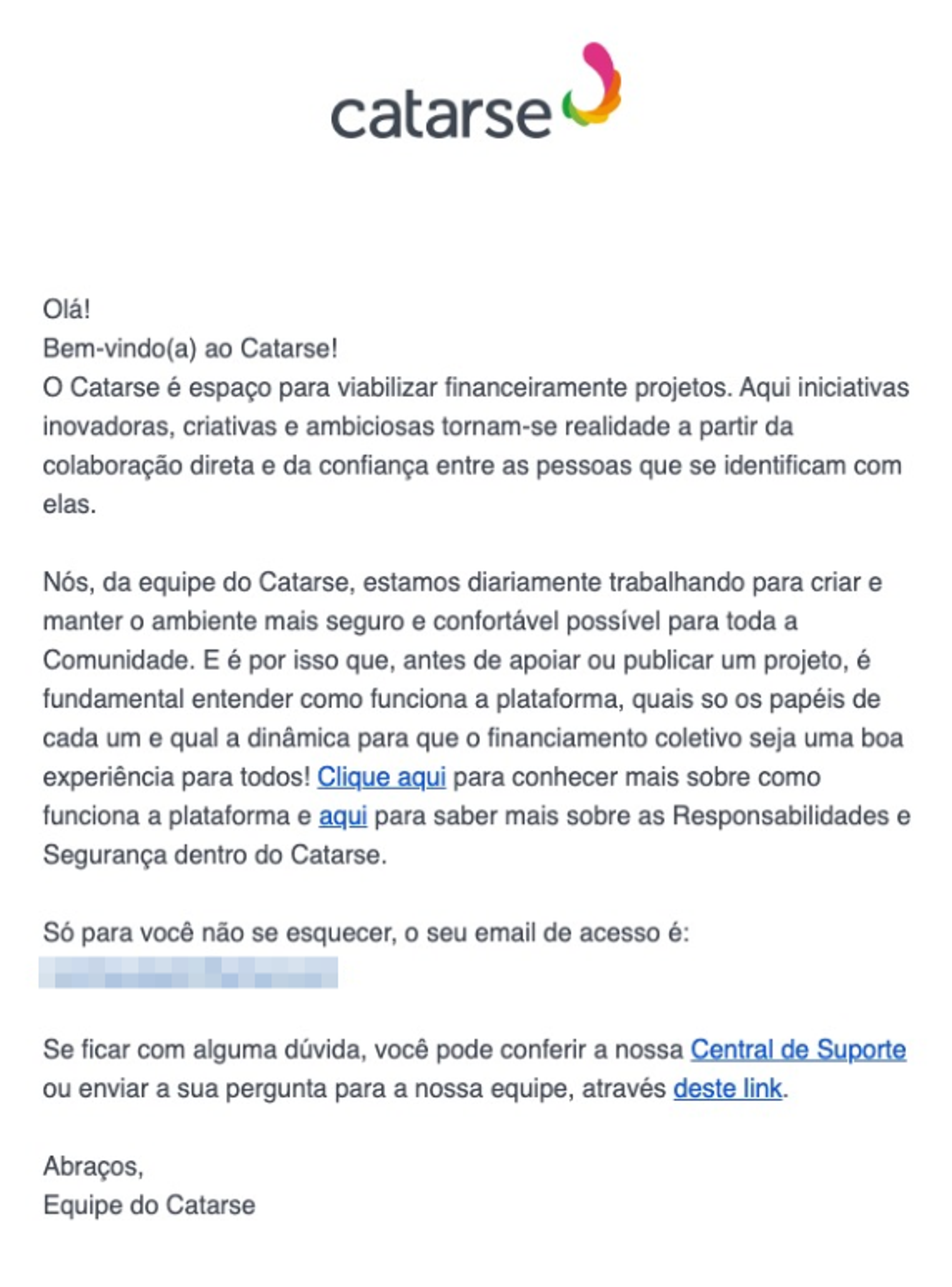 Veja o que o Catarse traz no seu email de onboarding: