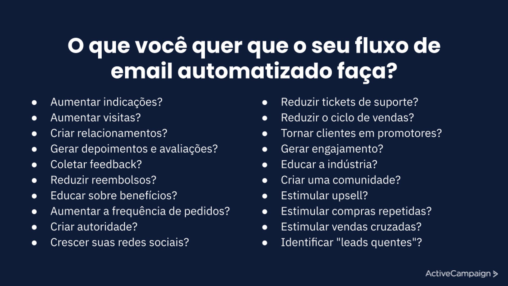 Você não precisa saber exatamente como será cada automação (isso é o próximo passo). Neste momento, você só está fazendo sua lista de metas de acompanhamento.