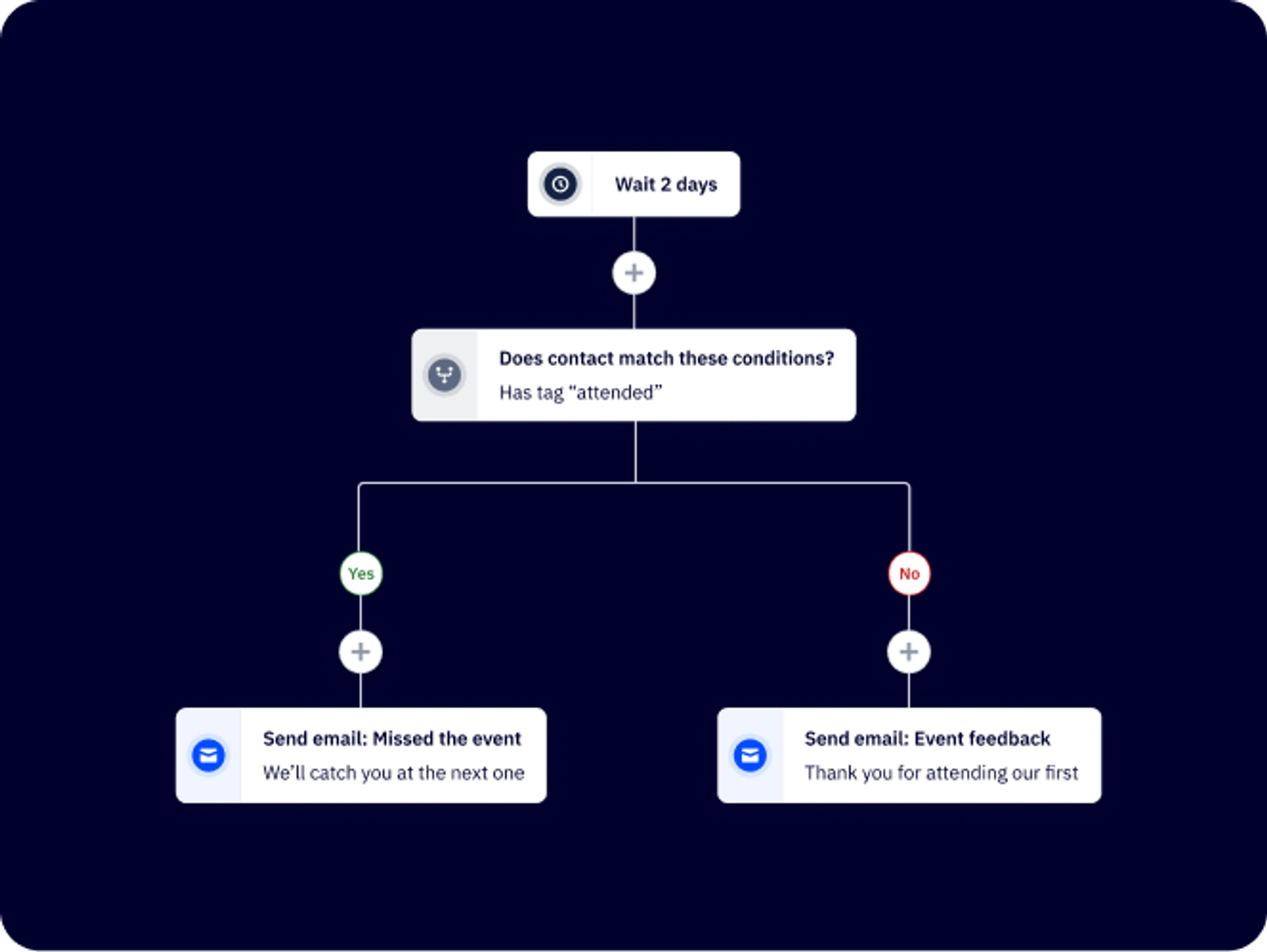 A ActiveCampaign permite que você defina gatilhos de automação que ajustem a cadência de email com base em dados de engajamento em tempo real. E, com funcionalidades avançadas de IA, você pode até prever os momentos ideais para enviar emails.