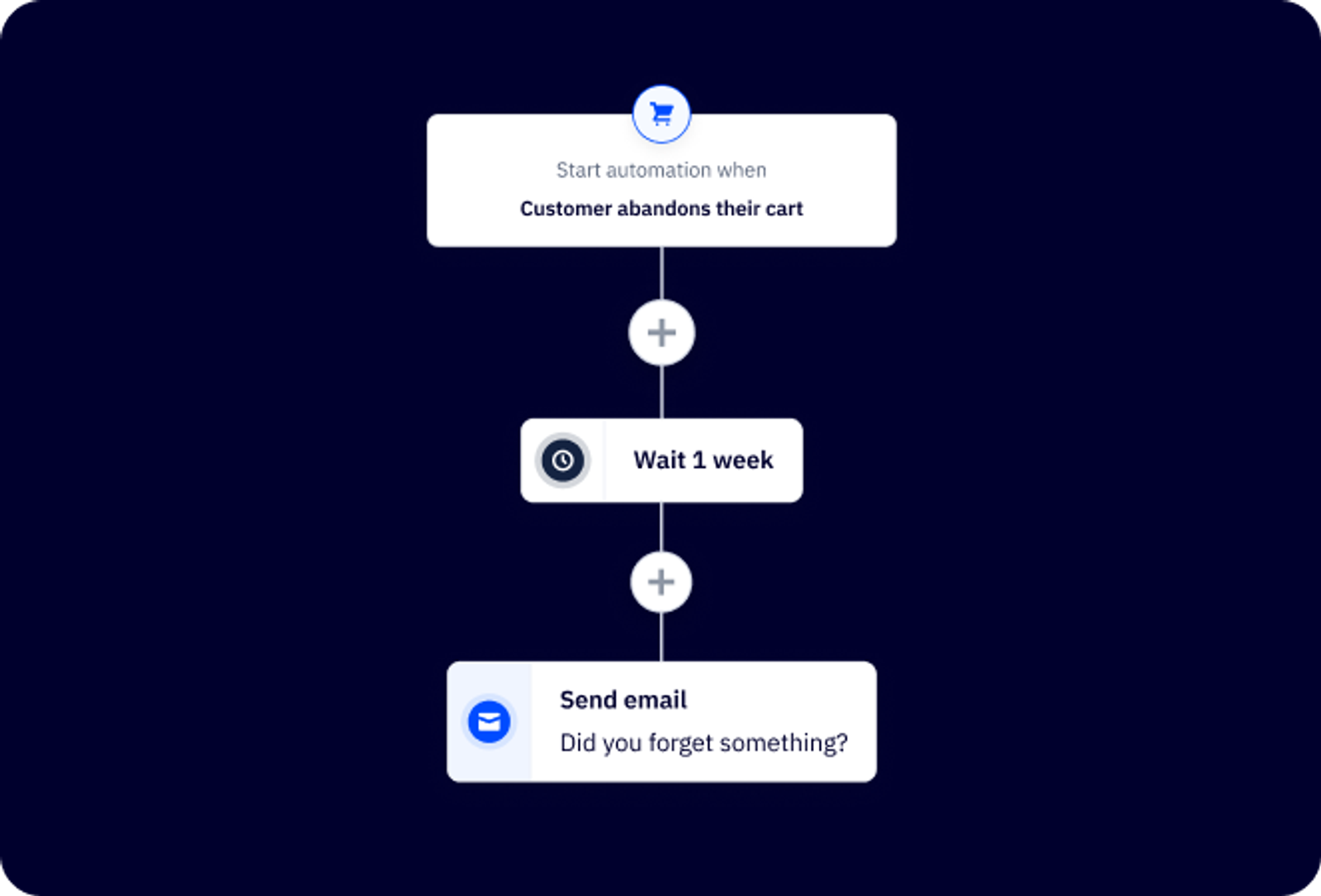 Os compradores abandonam carrinhos o tempo todo, mas isso não significa que a venda foi perdida. Esse fluxo os lembra de concluir a compra.