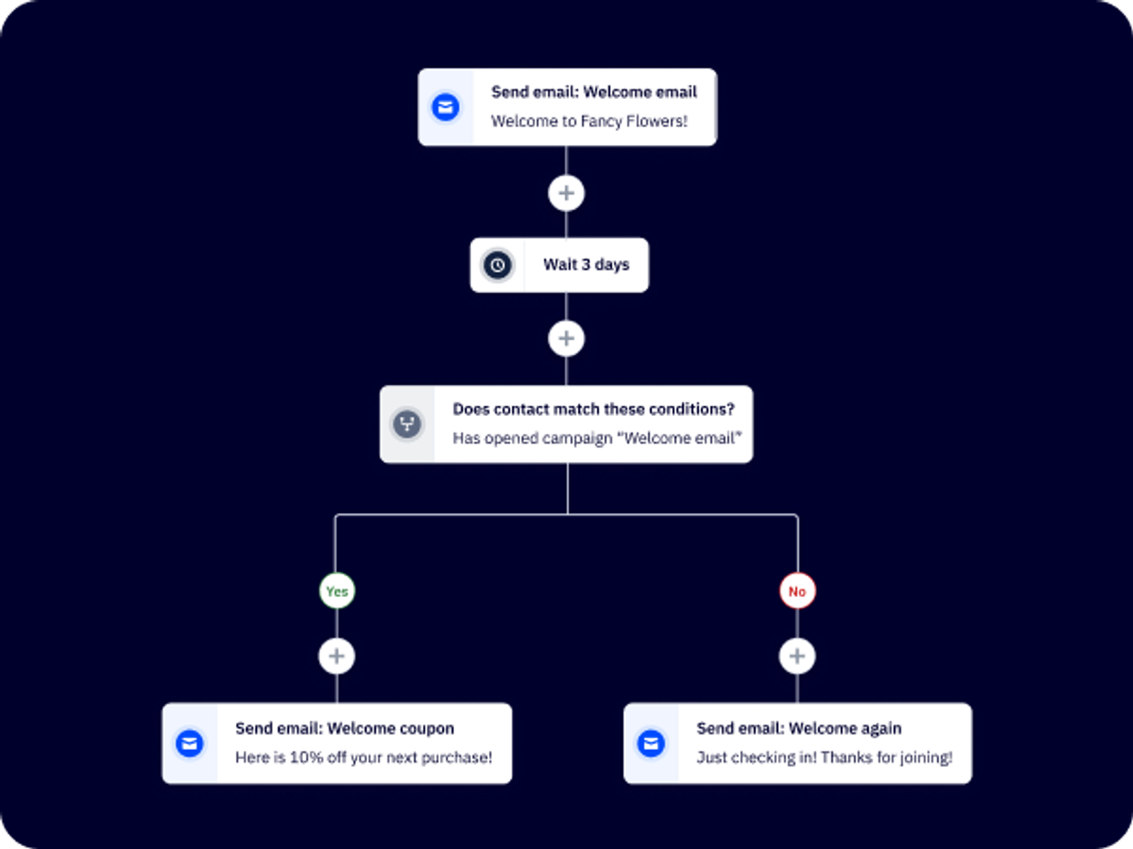 Em vez de apenas enviar um único email e esperar o melhor, os fluxos de email criam uma jornada contínua do cliente.