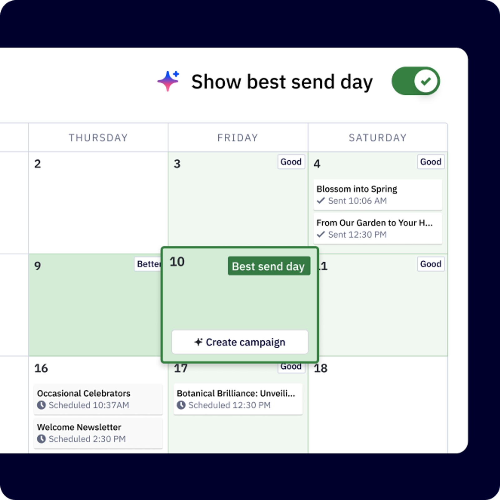 Você não precisa adivinhar ou manter um cronograma único para todos os casos. A ActiveCampaign personaliza os horários de envio para cada indivíduo, aumentando suas chances de se conectar com eles.