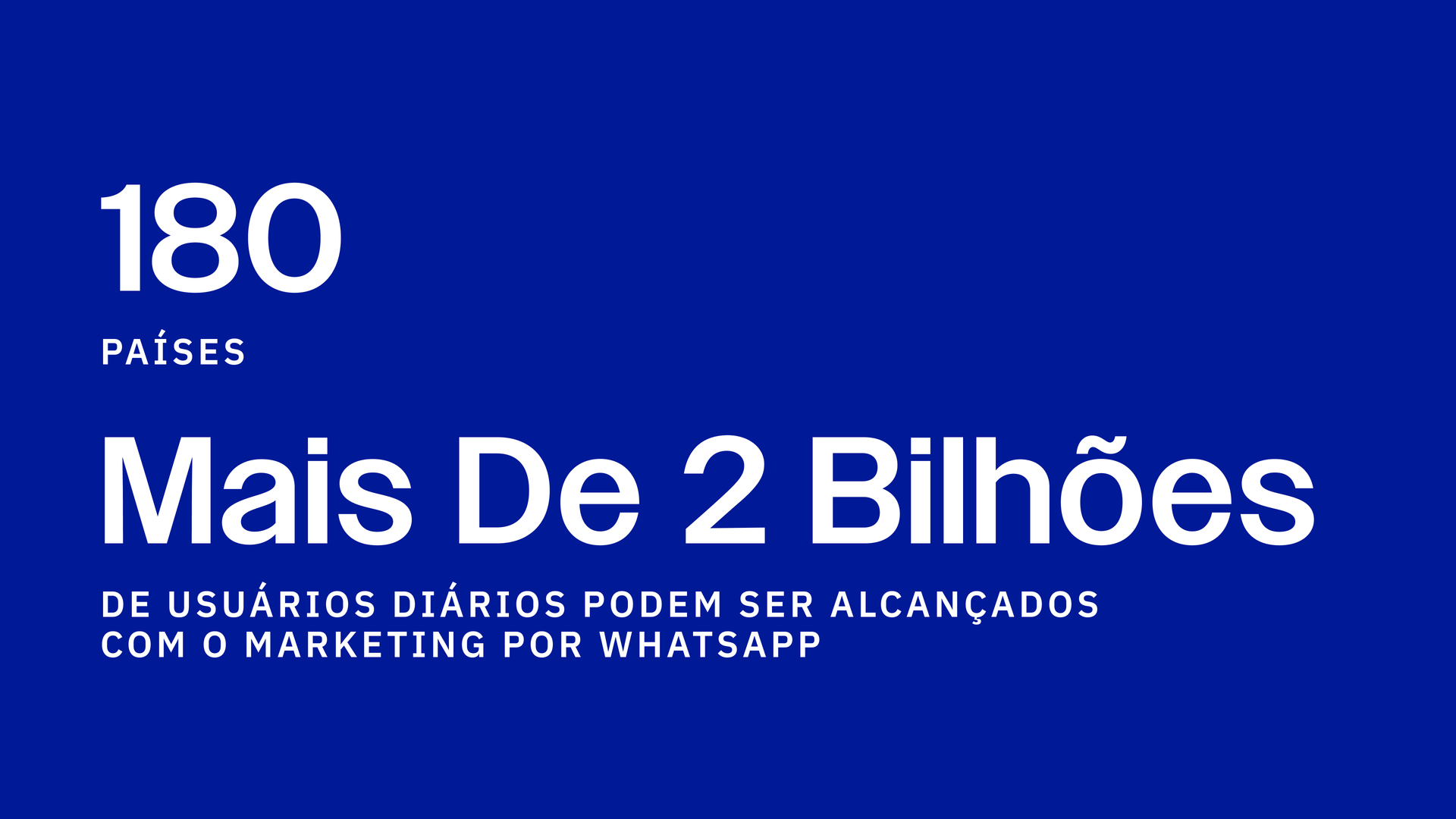 Os clientes esperam uma comunicação rápida, pessoal e conveniente, e o marketing do WhatsApp oferece todos os três. Com mais de 3 bilhões de usuários regularmente ativos em mais de 180 países, o WhatsApp é agora uma das formas mais diretas e confiáveis de alcançar clientes em qualquer lugar do mundo.