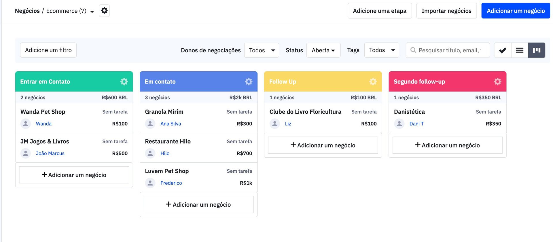 Esses dados podem vir de uma plataforma de CRM anterior, de uma ferramenta de gerenciamento de leads, de uma planilha (ou várias) ou de uma plataforma anterior de gerenciamento de informações dos clientes.