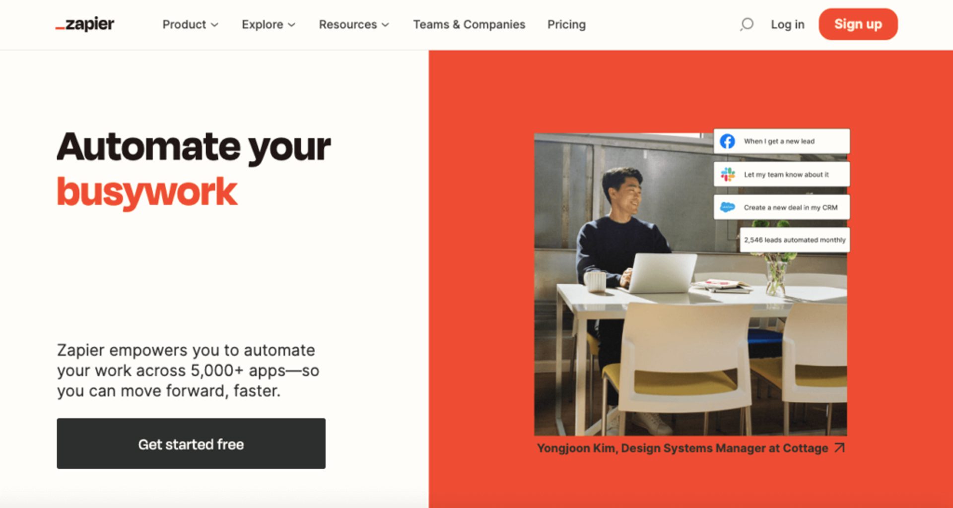 Se você está apenas começando a usar a automação (ou não tem orçamento), o plano gratuito da Zapier é um bom ponto de partida. Essa ferramenta é especialmente valiosa para jornadas de clientes que ocorrem em vários canais diferentes.