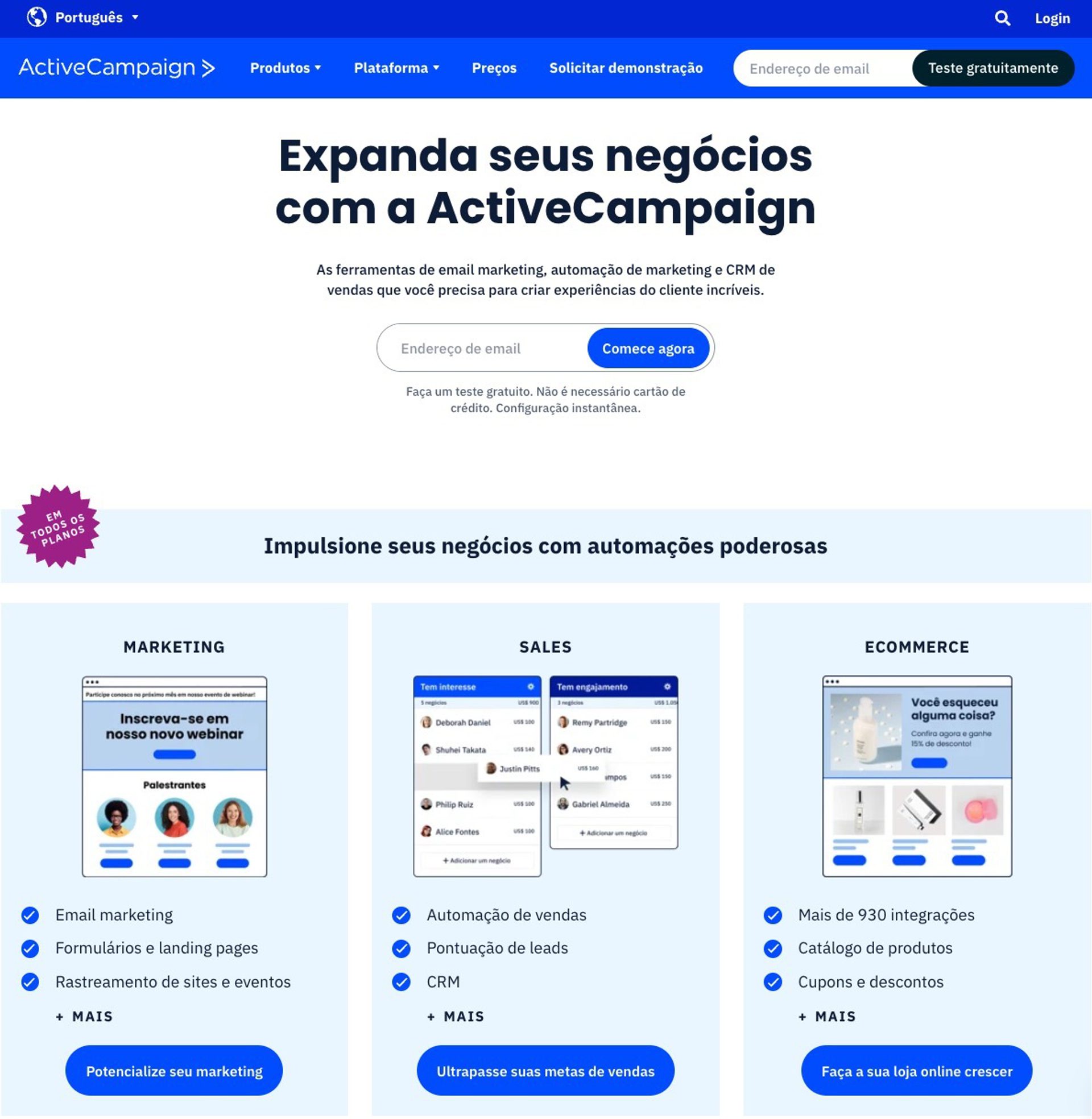 Não é surpresa que gostaríamos de começar apresentando nosso próprio serviço. A ActiveCampaign é uma ferramenta robusta de automação de marketing usada por mais de 180.000 empresas, desde lojas individuais até empresas de grande porte.