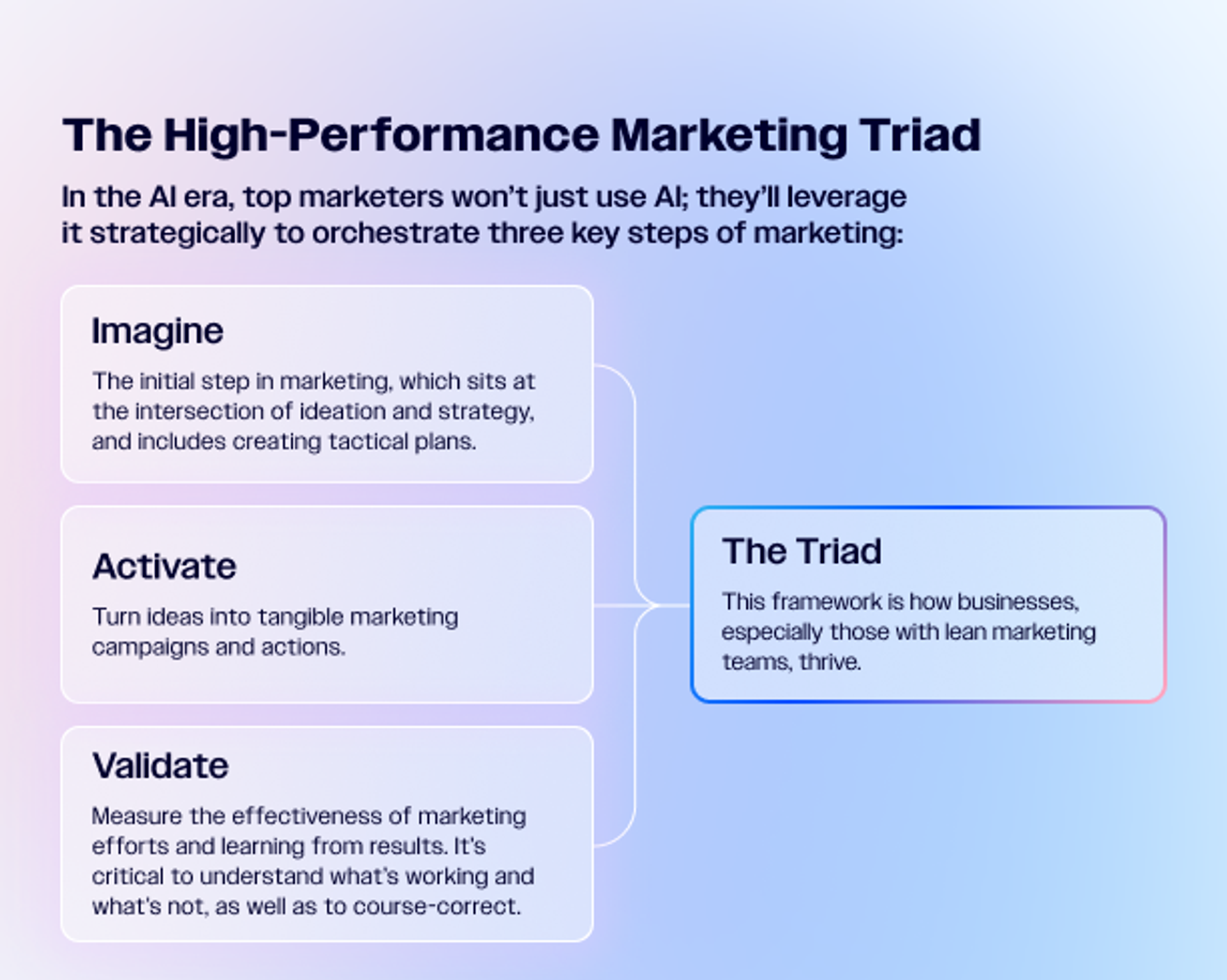 Veja como o seu conjunto completo de ferramentas de IA pode abranger a Tríade de marketing de alto desempenho e como essa orquestração estratégica se torna o marketing autônomo: