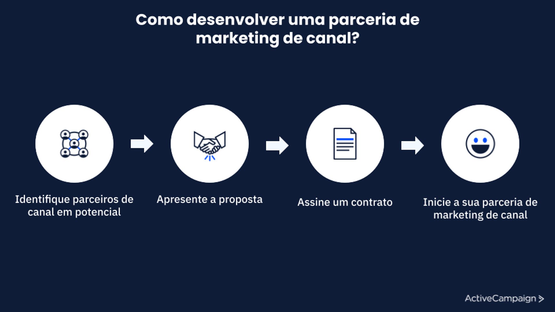 - Inicie a sua parceria de marketing de canal! Comece o plano para promover seu serviço com o novo parceiro de marketing de canal.