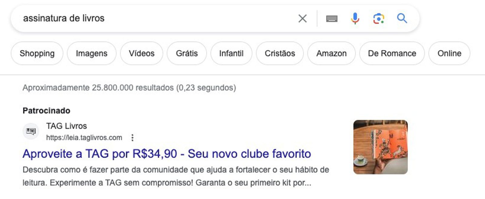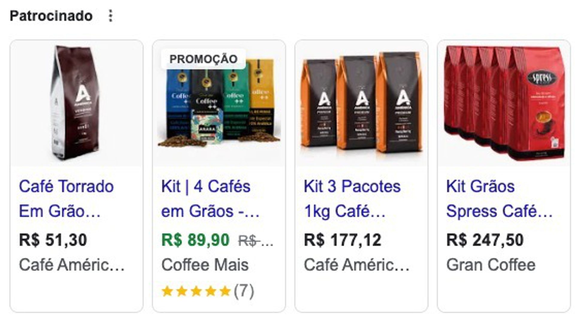 Por exemplo, se alguém pesquisar "café em grãos", o Google mostrará os principais resultados da pesquisa orgânica juntamente com anúncios de marcas que pagaram para aparecer ali.