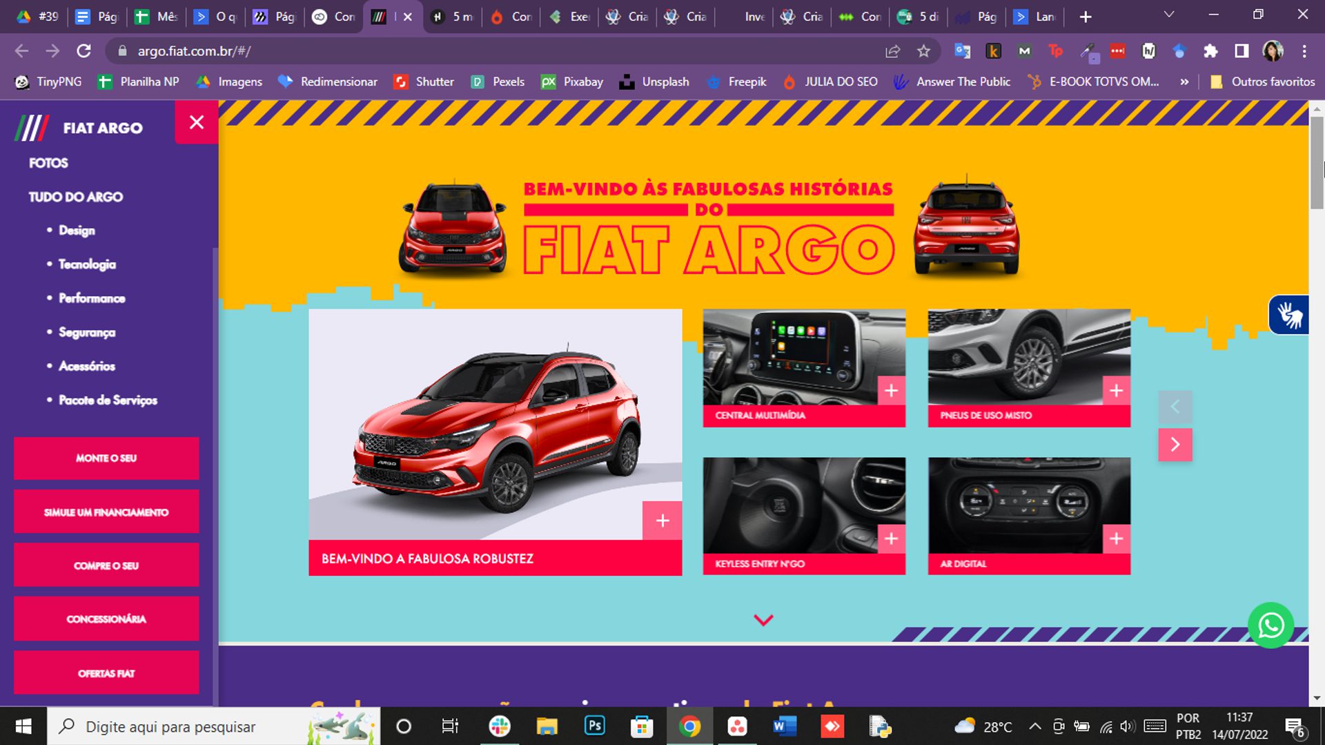 Por fim, o exemplo da Fiat que também tem uma página de vendas para divulgação de um dos carros da marca, o Argo.