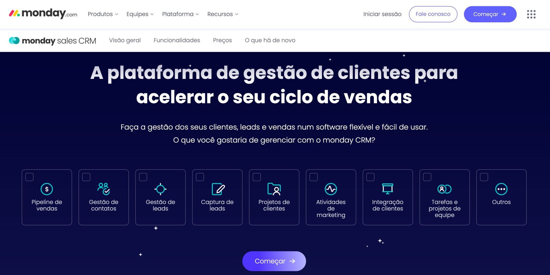 A maioria dos clientes do CRM da monday.com são pequenas empresas. Se você já usa a ferramenta de gerenciamento de tarefas dela, pode ser uma maneira simples de adicionar a plataforma de CRM ao seu conjunto de tecnologias.