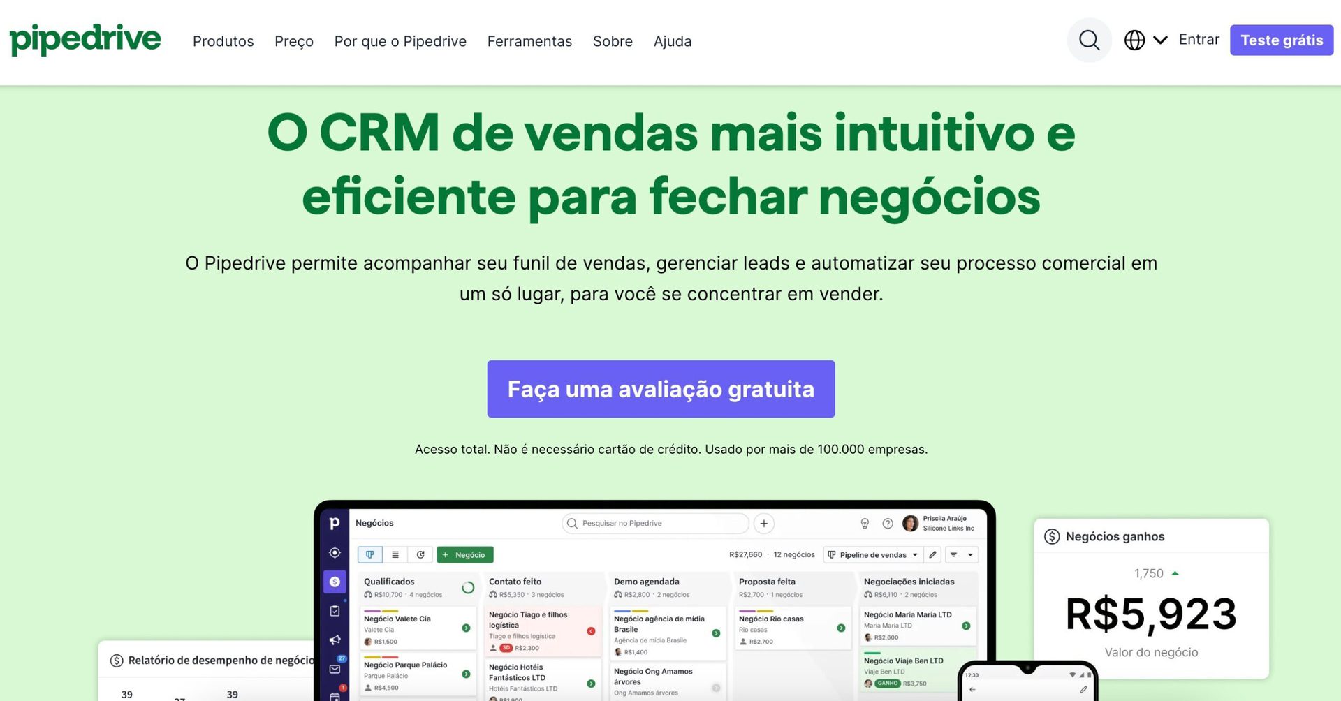 O Pipedrive se considera um CRM feito por vendedores e para vendedores. Seu objetivo é criar uma experiência de software que funcione com a realidade do processo de vendas cotidiano.