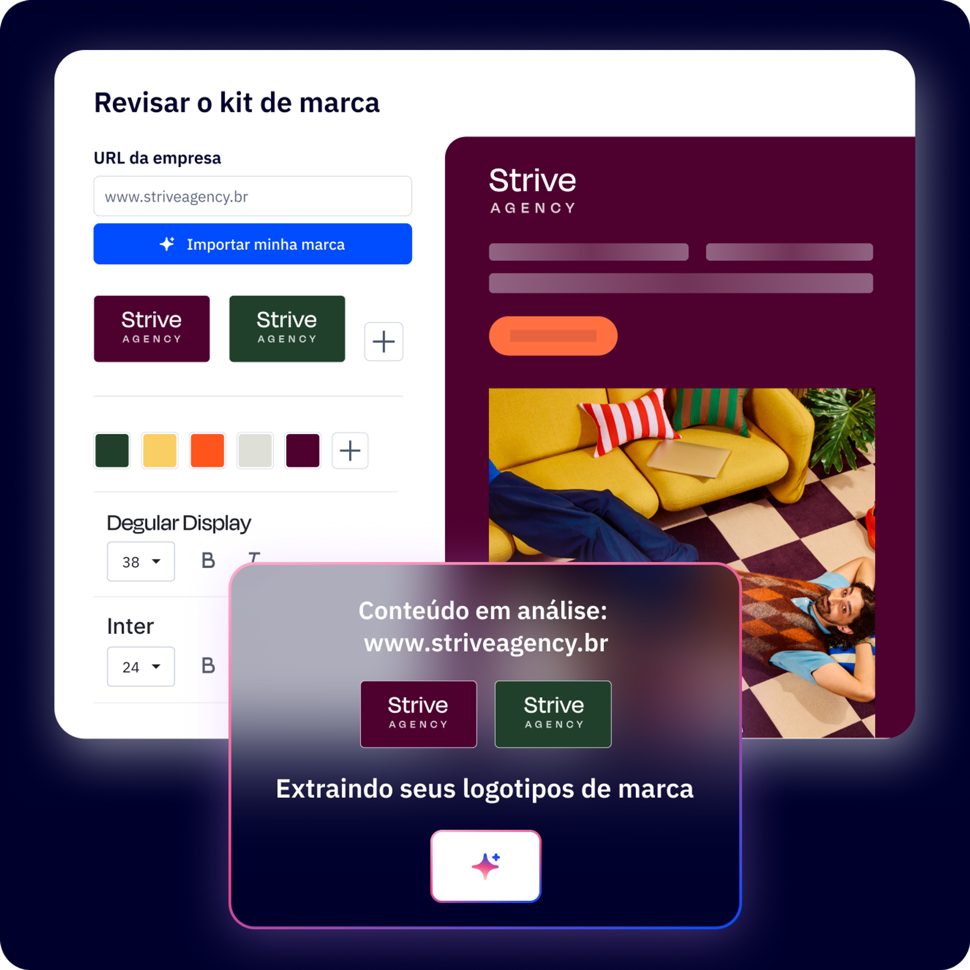 Para profissionais de marketing que gerenciam várias campanhas, o Criador de kit de marca por IA permite manter a consistência da marca sem o tedioso trabalho manual de estilizar cada ativo, descobrindo oportunidades de receita que você poderia ter perdido em seus dados e entregando as experiências personalizadas que os clientes esperam, tudo isso sem aumentar o quadro de funcionários.