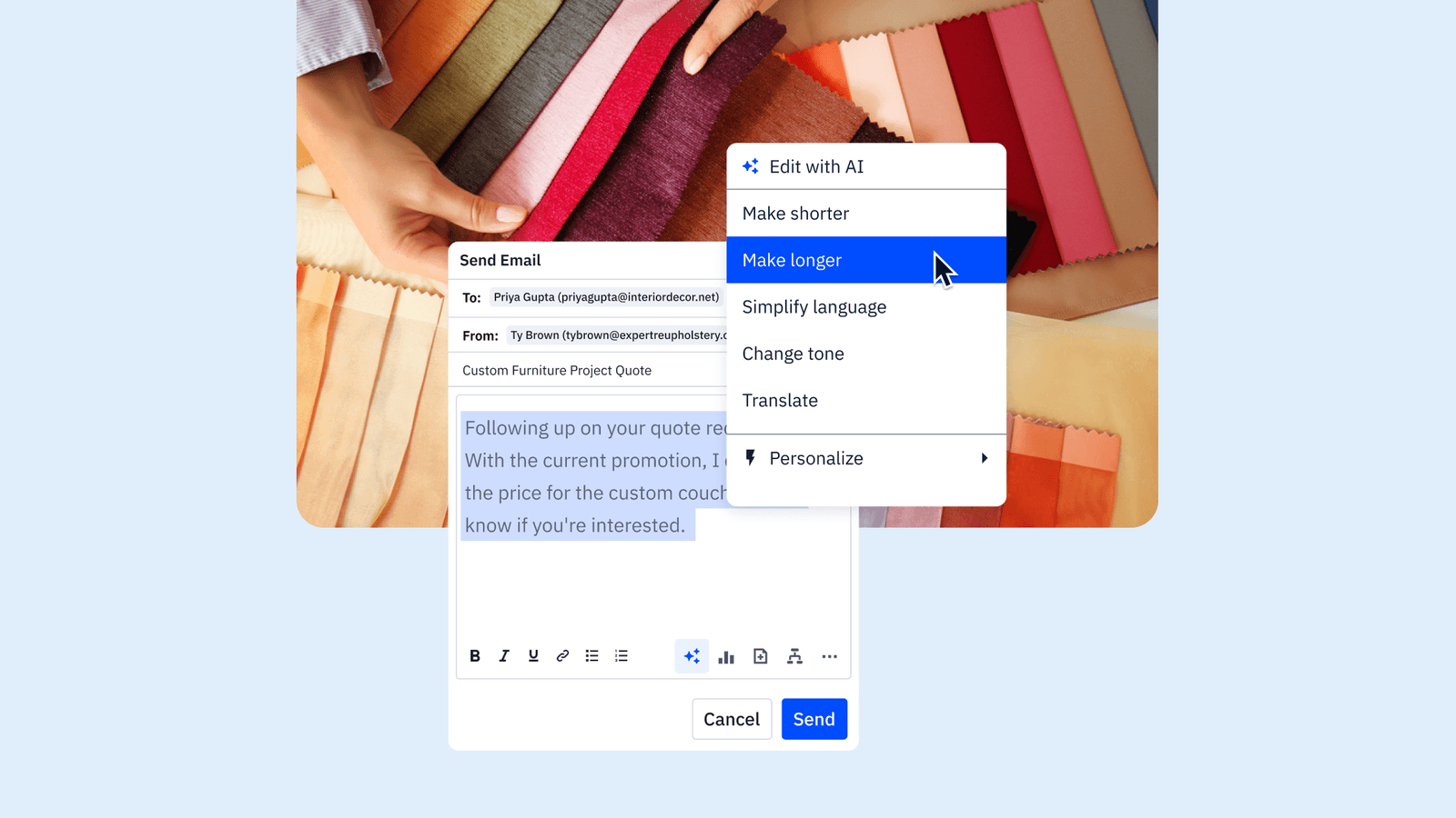 Procure formas de usar seus dados de consumidor com ainda mais eficácia. Por exemplo, a ActiveCampaign inclui também funções como o conteúdo dinâmico, que permite que você puxe dados de consumidor automaticamente para um modelo de email personalizado.