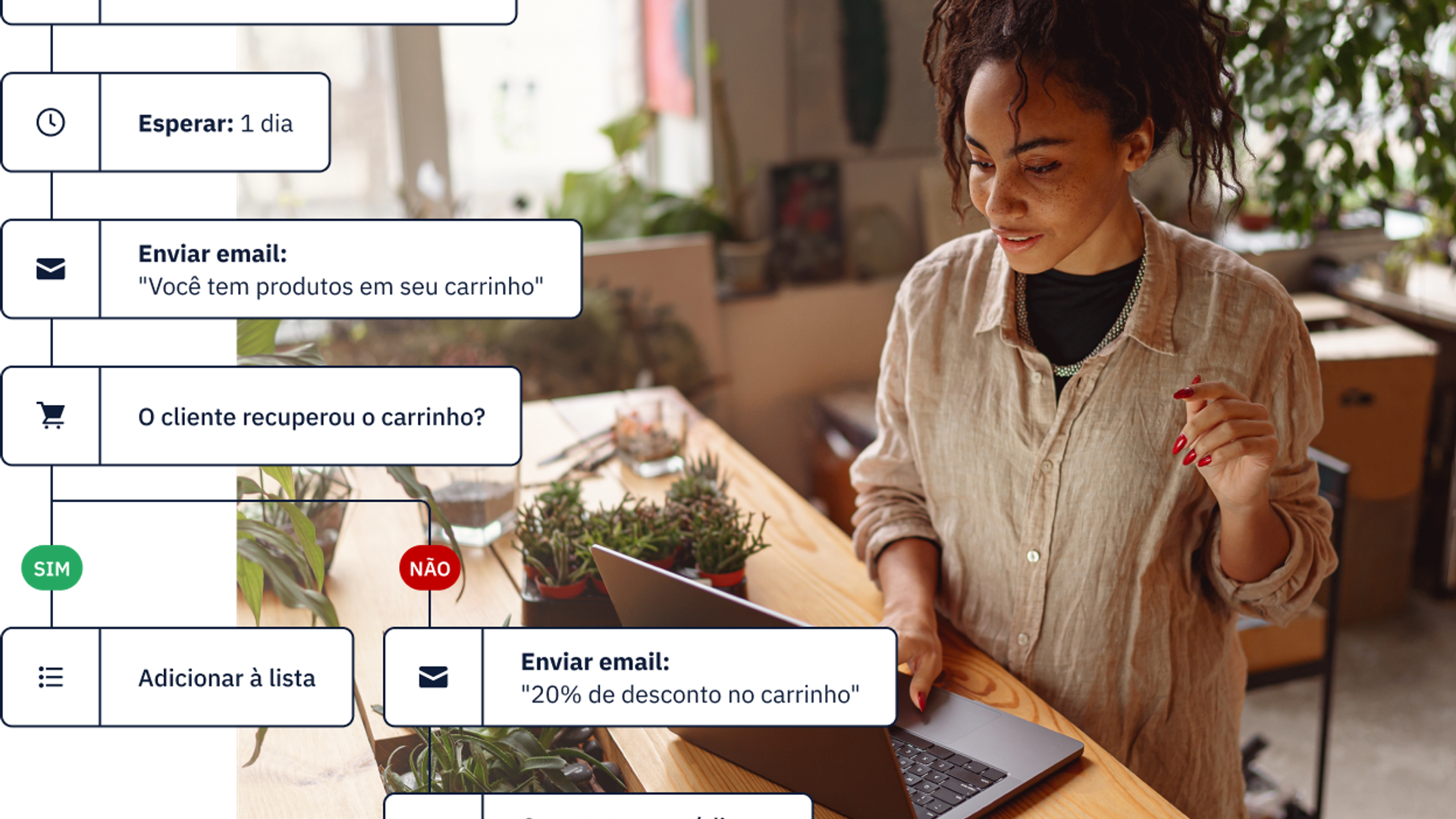 Por meio da nossa automação para carrinhos abandonados, ajudamos as empresas que atendemos a recuperar 10,5 milhões de dólares ao longo do fim de semana da Black Friday - um aumento de 56% em relação ao ano anterior na receita recuperada.