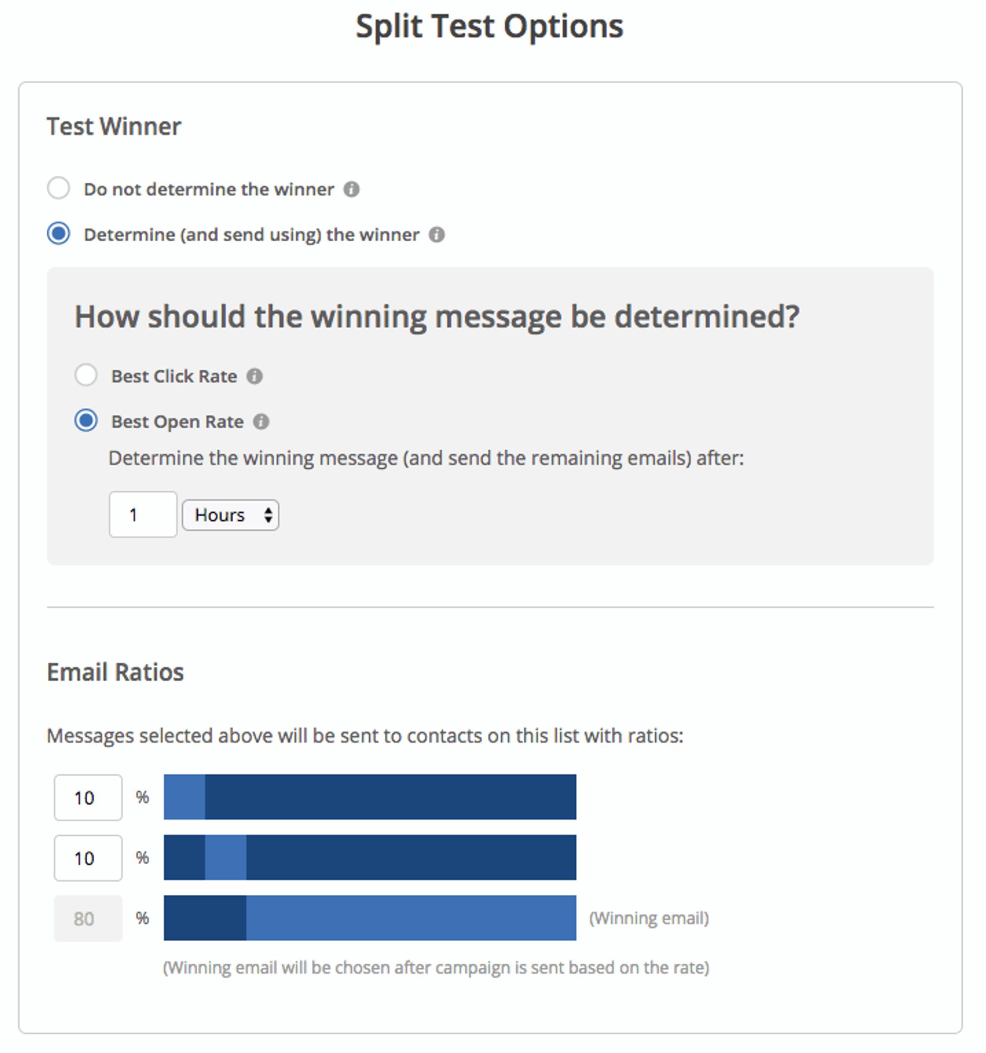 Você pode testar linhas de assunto contras múltiplas variáveis diferentes. Pode ajustar o tamanho da lista que usa para testar linhas de assunto. Esperar mais antes de decidir qual é a melhor.