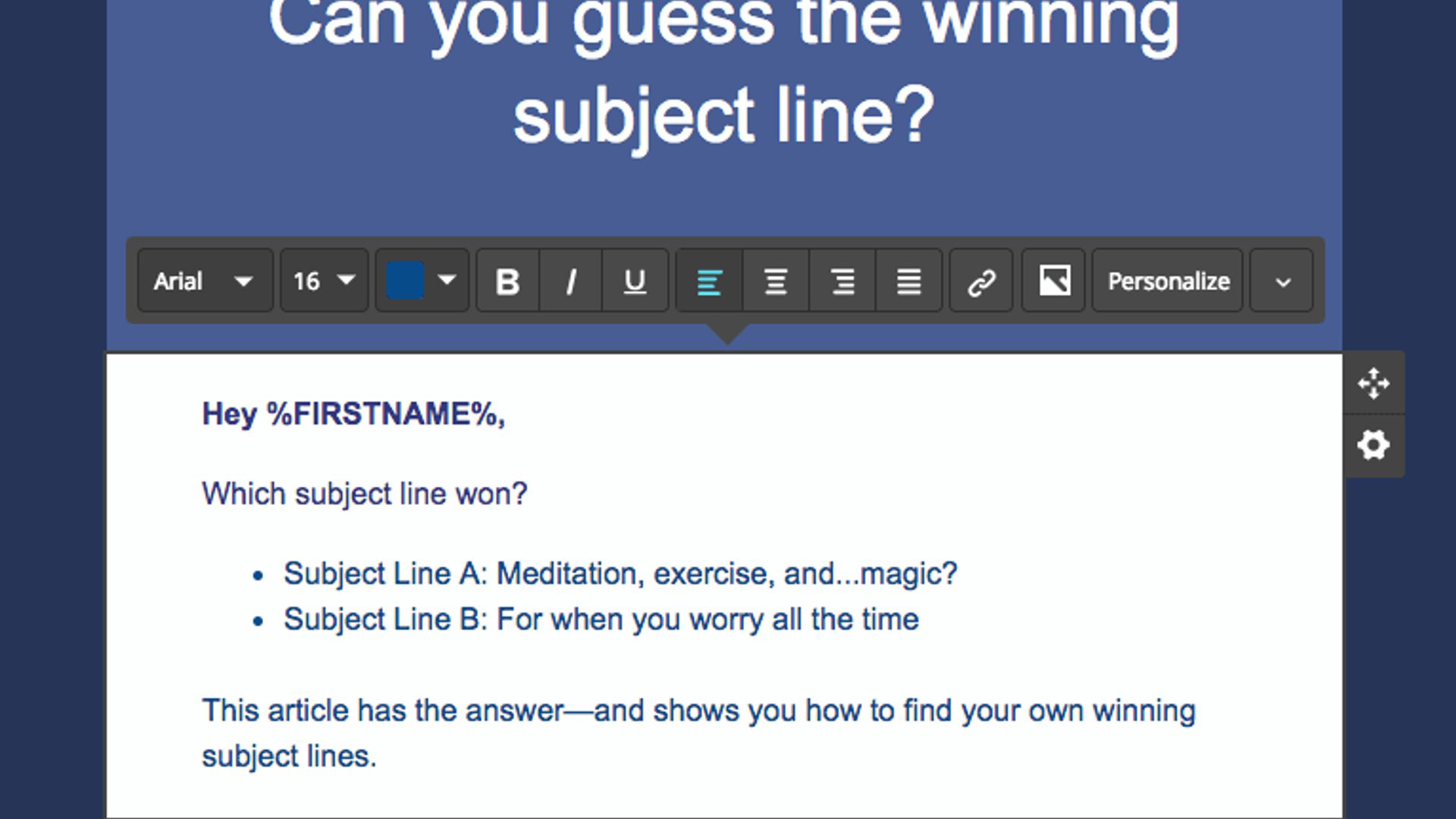 Um teste básico de linha de assunto te mostra qual é a vencedora.