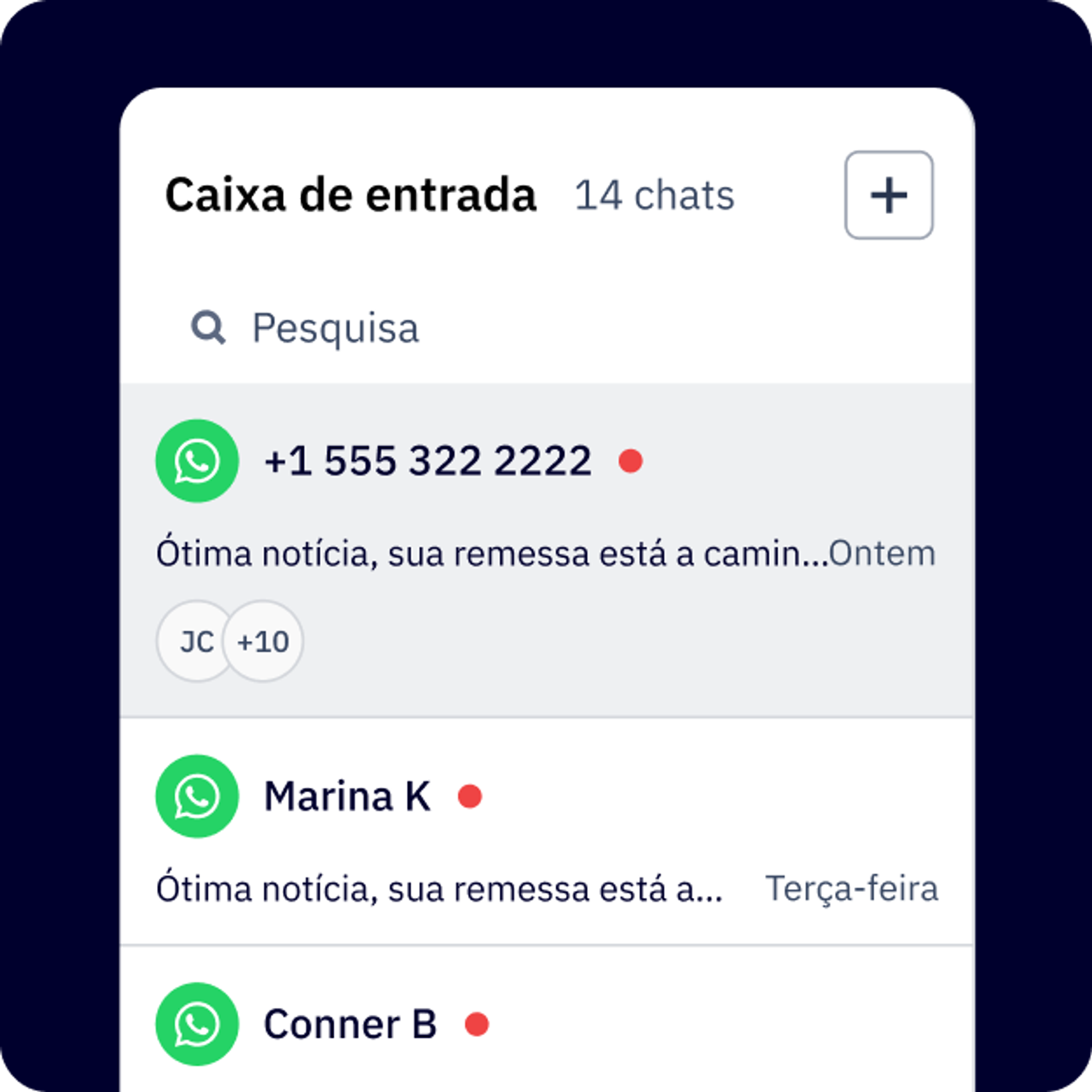 - Design para celular: a experiência nativa do WhatsApp no celular cria uma jornada do cliente contínua que acompanha os clientes onde quer que estejam.
