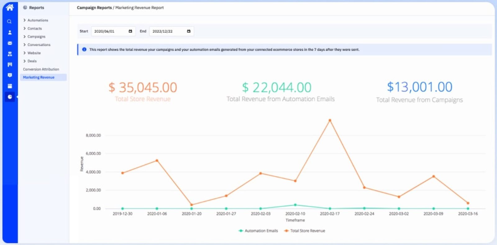 Ao escolher a ActiveCampaign, você pode ter certeza de que mais contatos verão os emails que você envia, o que aumenta suas chances de interação (e, com sorte, de conversão). Isso prova que a ActiveCampaign é a plataforma de email ideal se você se preocupa com a capacidade de entrega e a geração de receita.