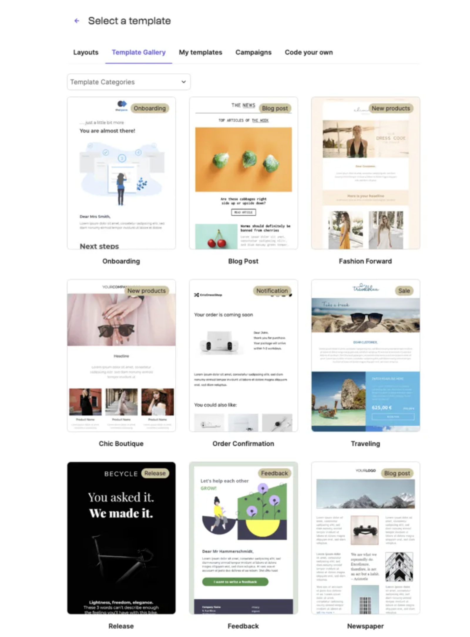 No geral, tudo se resume ao nível de personalização que você quer e se você ficará satisfeito com os 40 modelos da Brevo em comparação com os mais de 250 da ActiveCampaign.