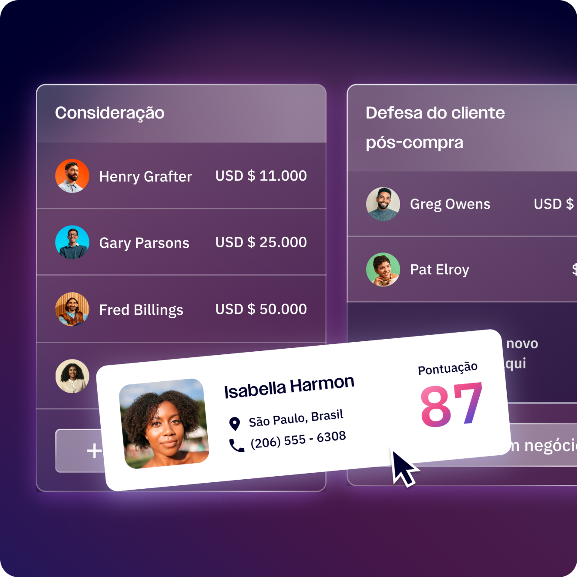 O gerenciamento de funil é intencionalmente leve e rápido de ser executado, com quadros no estilo Kanban que exibem o fluxo dos negócios e as oportunidades de arrastar e soltar entre os estágios sem muita sobrecarga administrativa.