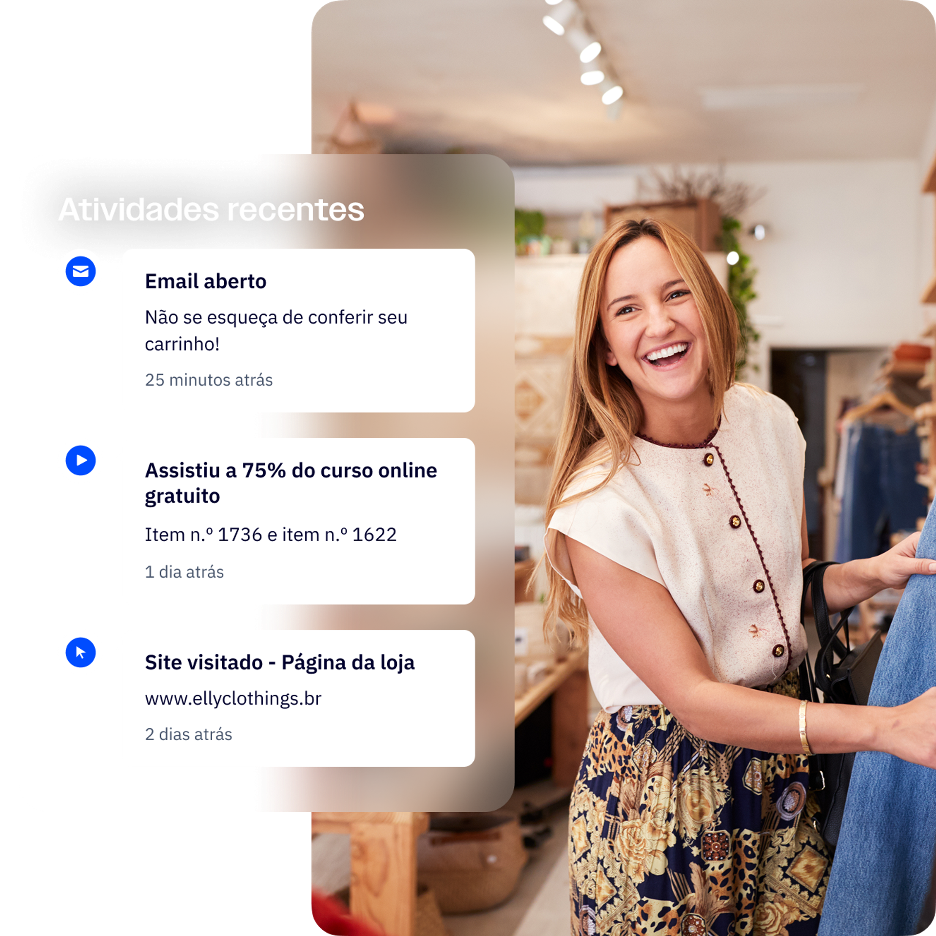 Acompanhe as ações dos seus clientes em seus sites e apps da web para monitorar a intenção de compra e o engajamento.