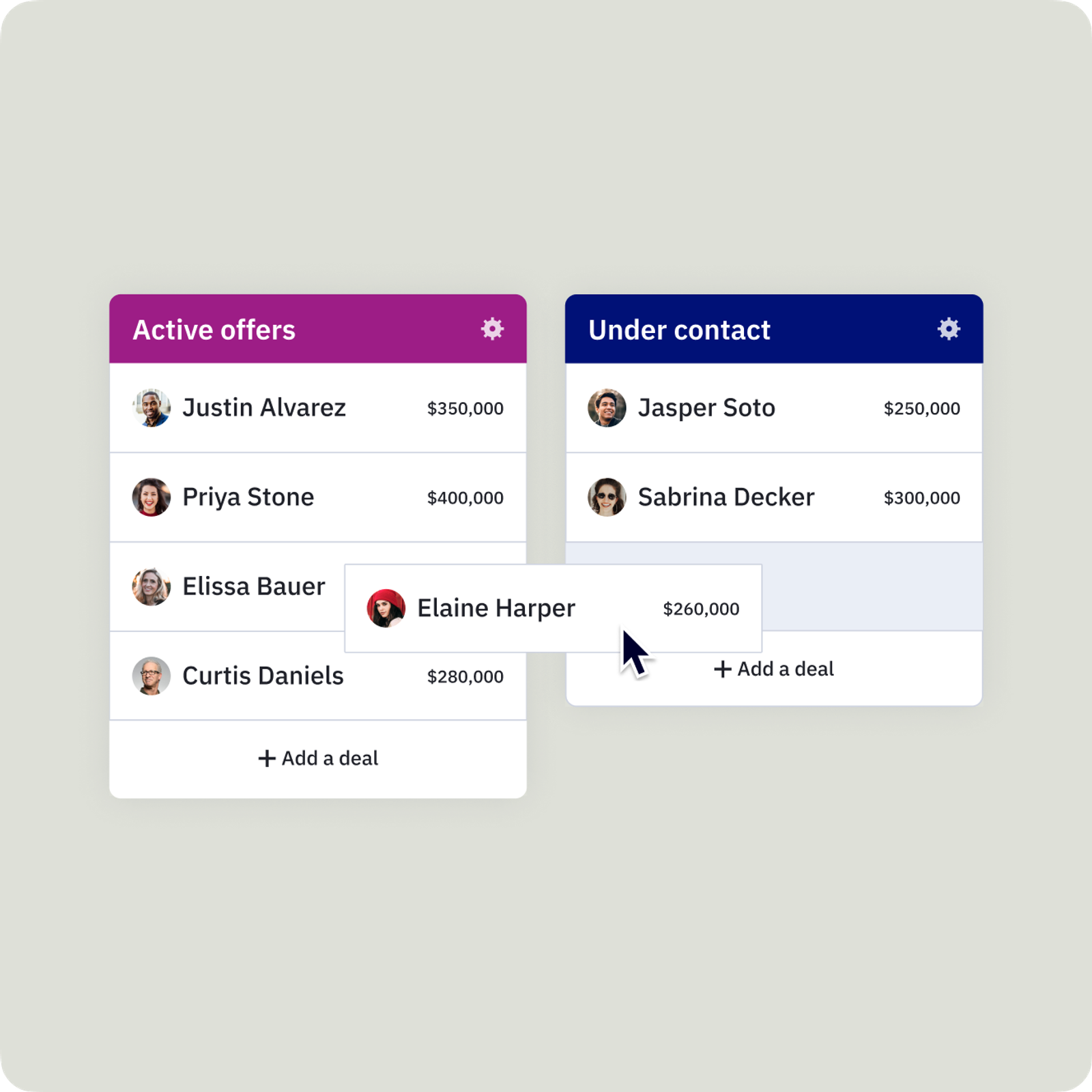 A ActiveCampaign foi projetada para otimizar seu fluxo de trabalho de vendas e ajudar você a fazer mais com os mesmos recursos. Seja para corretores de imóveis autônomos que querem expandir suas atividades ou para equipes que querem resultados melhores, nossas ferramentas eficientes de marketing e vendas podem transformar seus negócios.