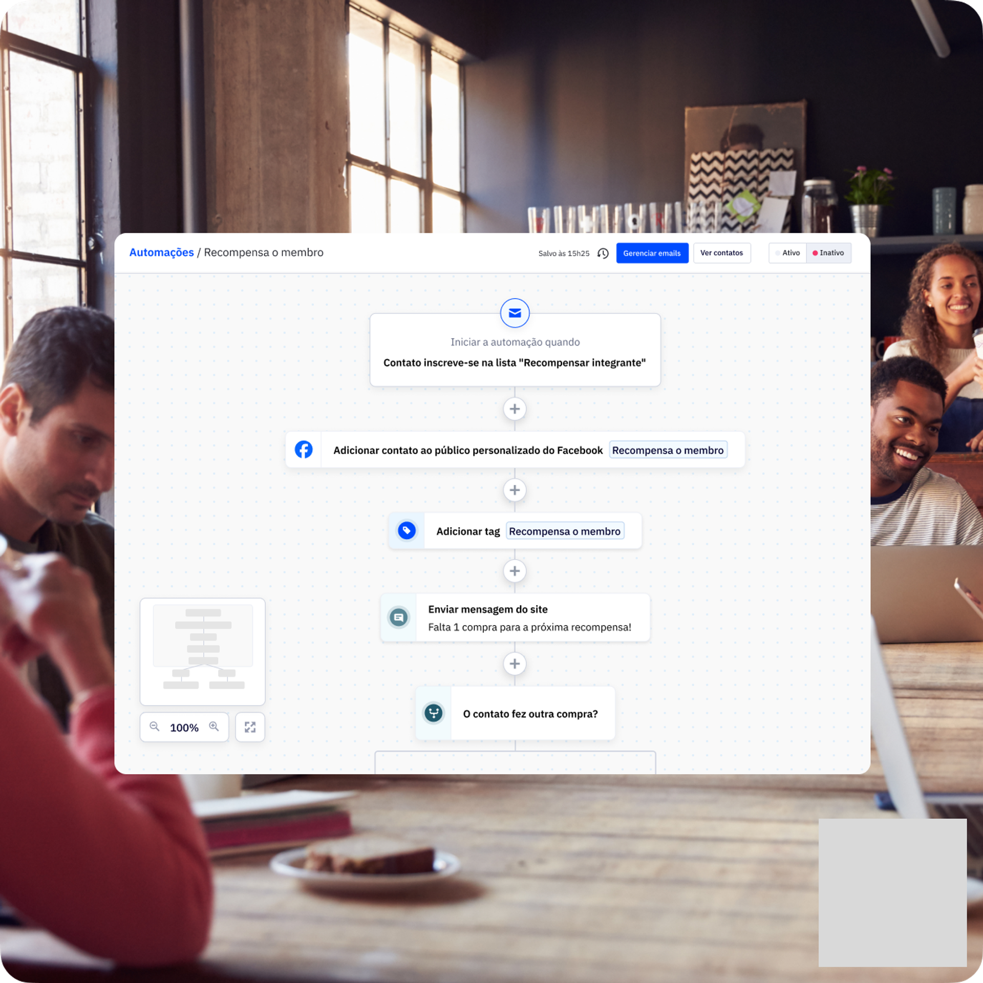 A automação de marketing faz o que as pessoas não conseguem fazer em grande escala. Ela economiza tempo e dinheiro, além de otimizar sua estratégia de marketing, usando dados do cliente para personalizar seus emails e outros canais de marketing. A automação de marketing também permite que você veja como leads se convertem em clientes, criando o fluxo de trabalho perfeito para seus clientes.