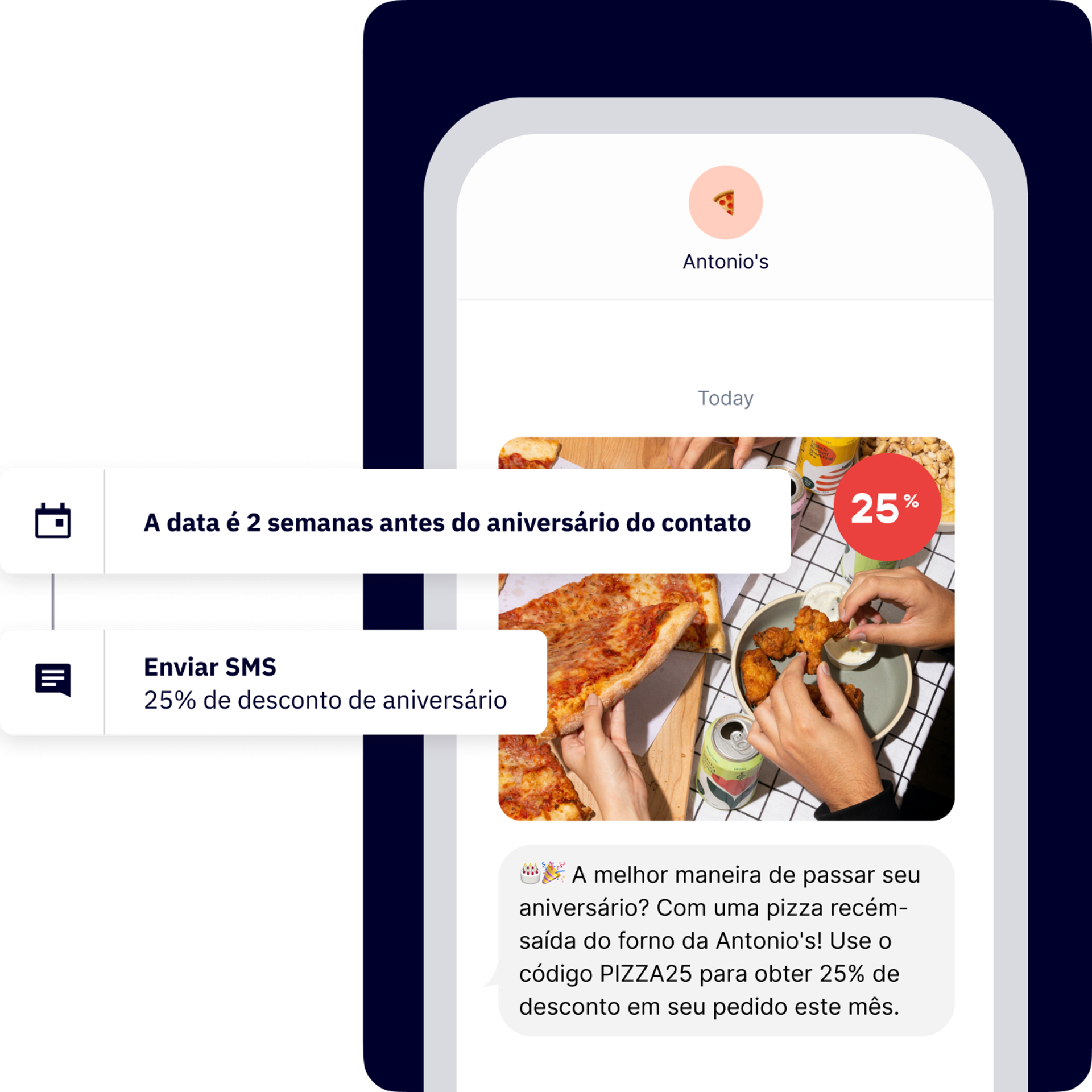 Crie relacionamentos mais profundos com clientes com automações e campanhas de SMS pessoais orientadas por dados.