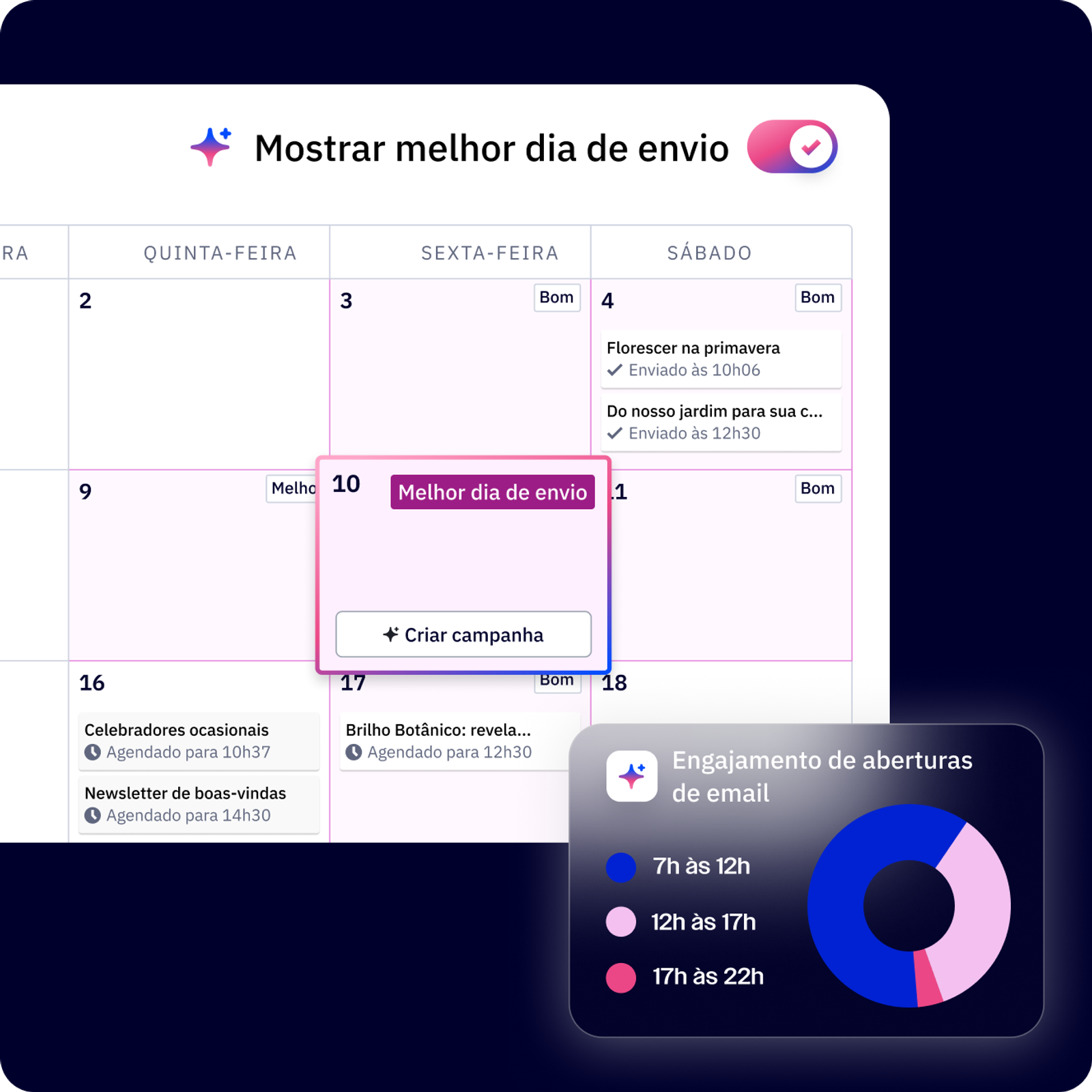 Planeje, agende e otimize campanhas com insights e horários orientados por IA.