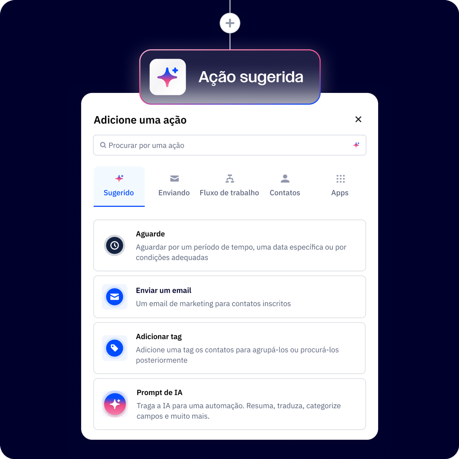 Impulsione todas as experiências de marketing, incluindo campanhas de email, automação de SMS e mensagens do WhatsApp, com o Active Intelligence, que imagina, ativa e valida para você.