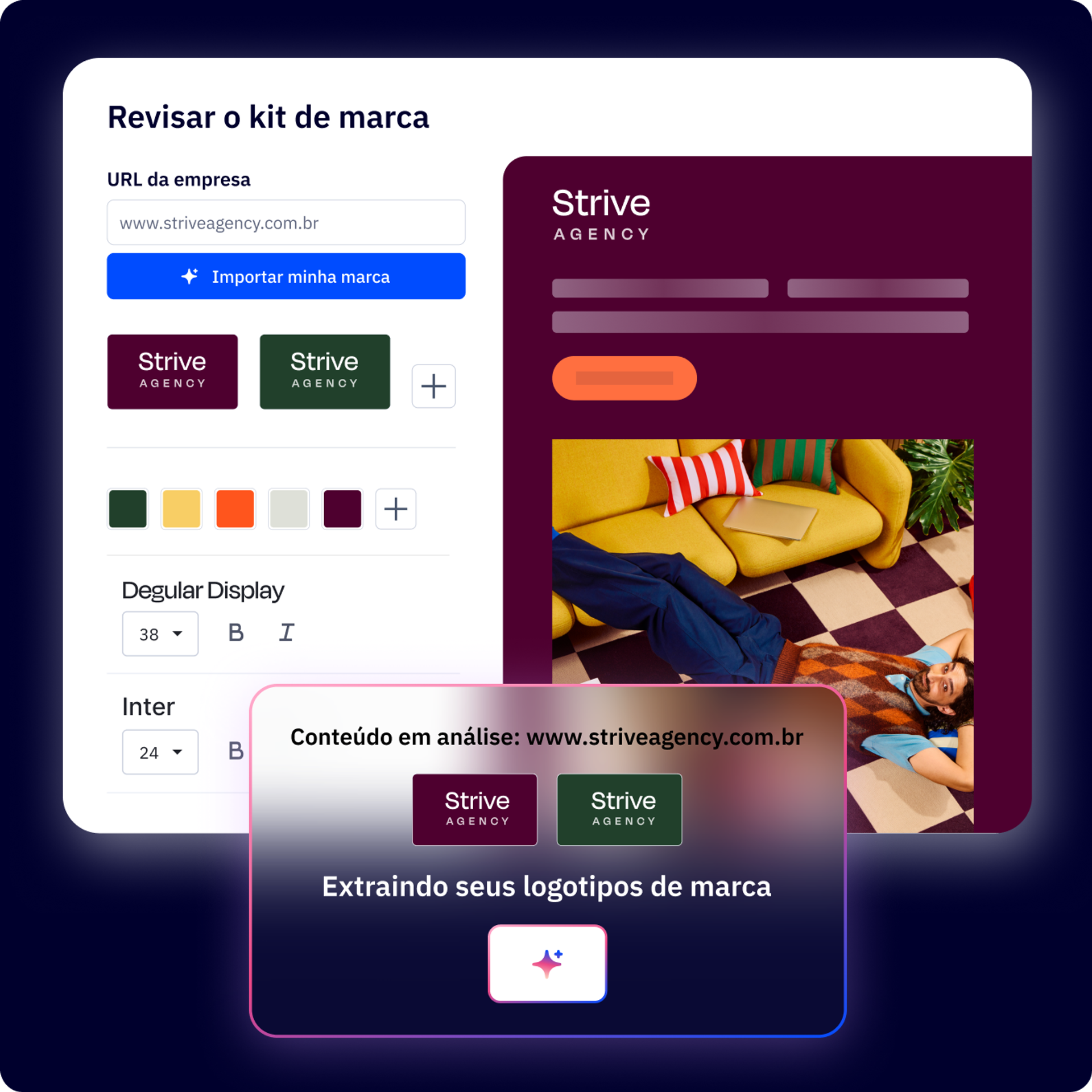 Dê boas-vindas aos agentes de IA projetados para imaginar, ativar e validar seu marketing. Do Criador de kit de marca por IA ao Criador de campanhas por IA, cada um foi criado para uma tarefa específica, ajudando você a lançar mais rápido, manter a marca e expandir com menos esforço.