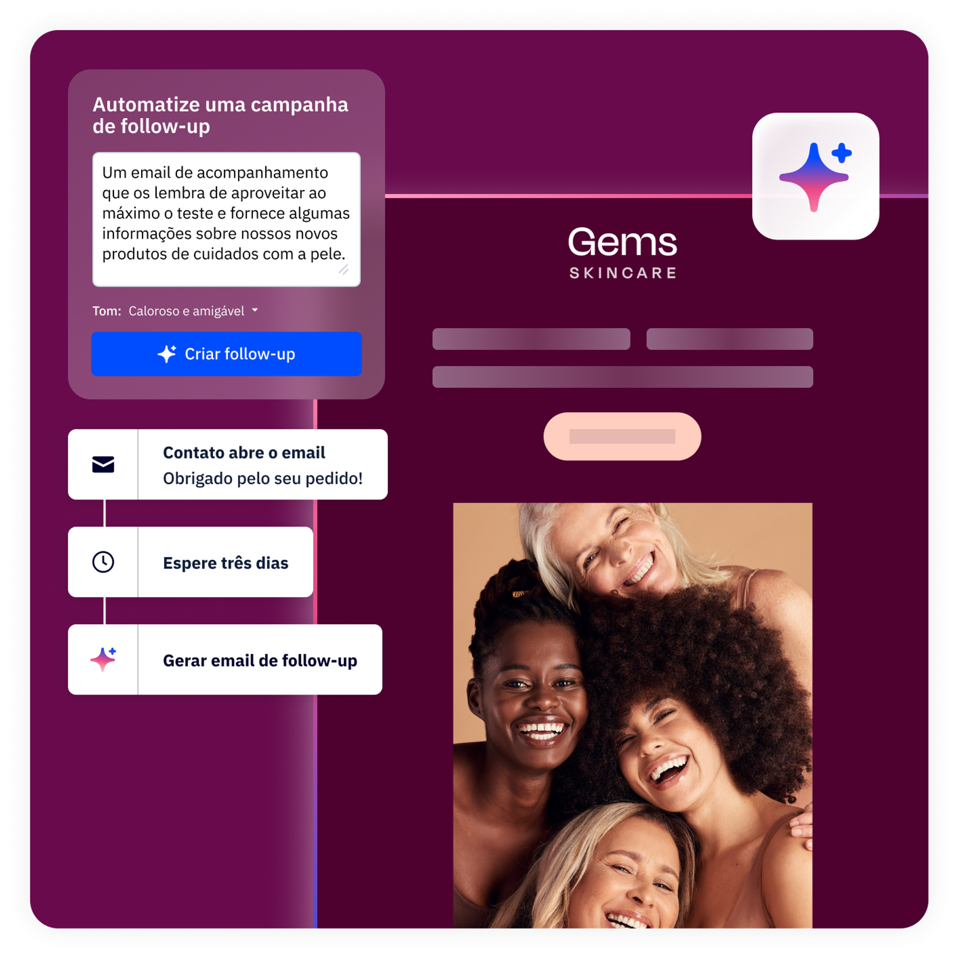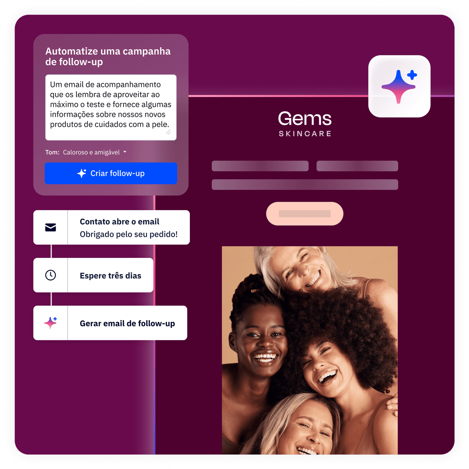 Email, SMS, WhatsApp: a IA cuida de tudo para você. Envie a mensagem certa no canal certo sem suposições, com o respaldo de bilhões de pontos de dados.