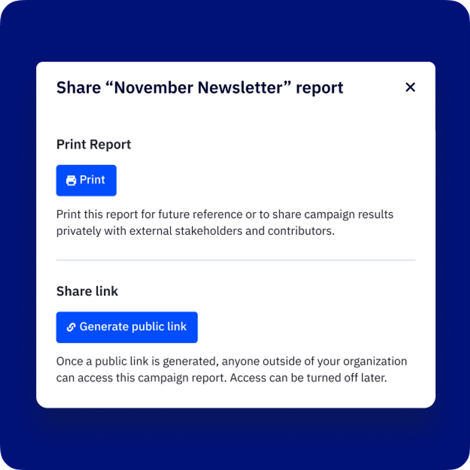 Chega de ter que vasculhar seus dados; nossos painéis de controle dinâmicos e compartilháveis fornecem com rapidez os insights de que você precisa para ver o desempenho de todas as suas campanhas.