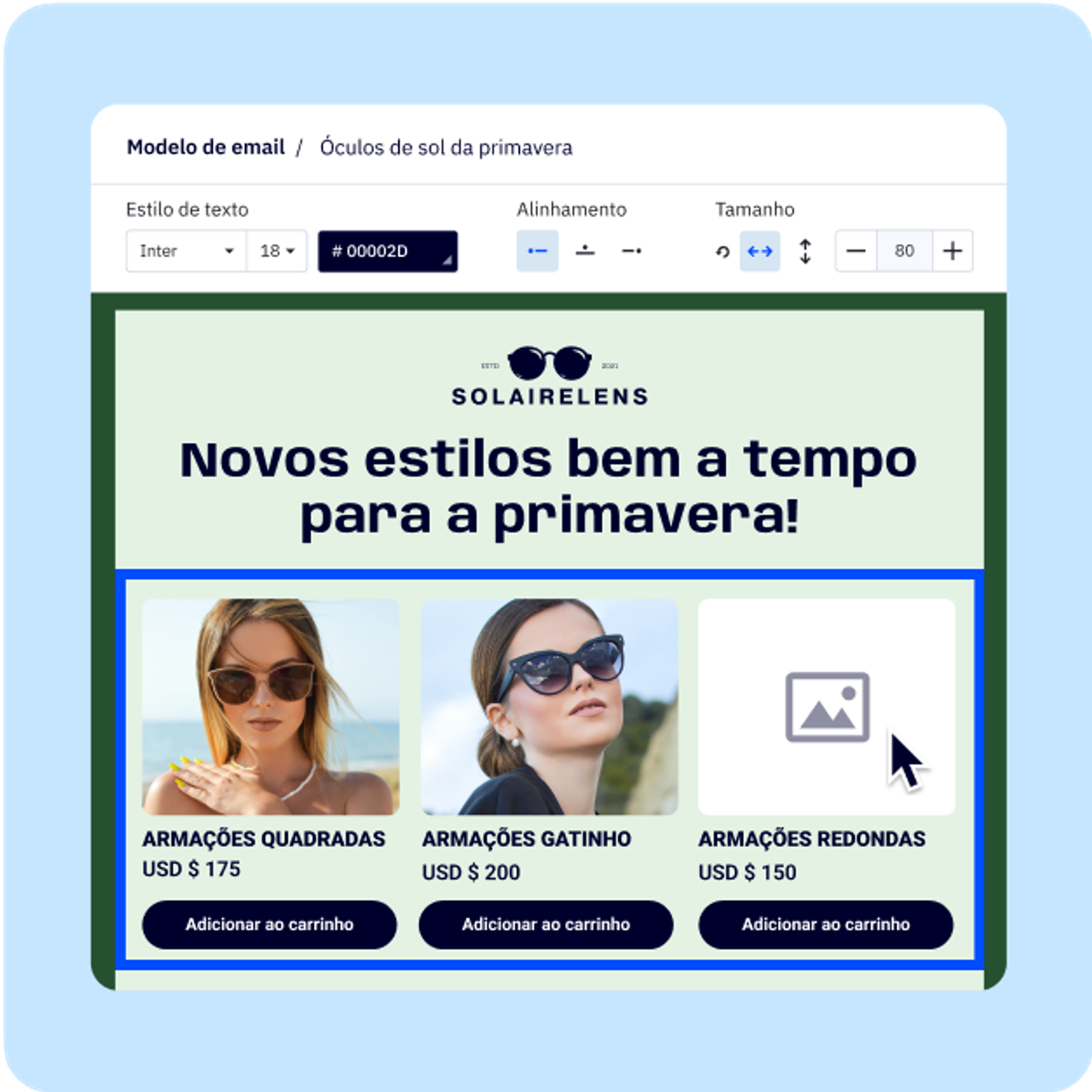 Certifique-se de que cada email enviado esteja pronto para atrair a atenção e gerar receita. Nossas ferramentas de design oferecem controle total sobre a aparência.