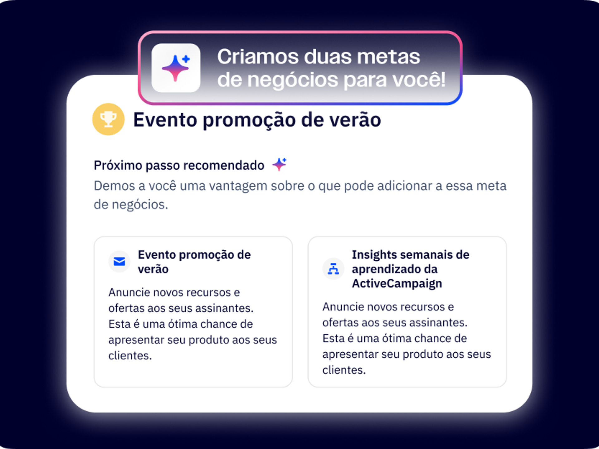 Então construímos algo diferente. Começamos com uma poderosa automação de marketing que tornou as ferramentas avançadas simples e acessíveis a todos. Hoje, evoluímos para a principal plataforma de marketing autônomo, impulsionada por Active Intelligence, que oferece a empresas de todos os tamanhos a orientação estratégica e os agentes de IA necessários para competir e crescer em qualquer escala.