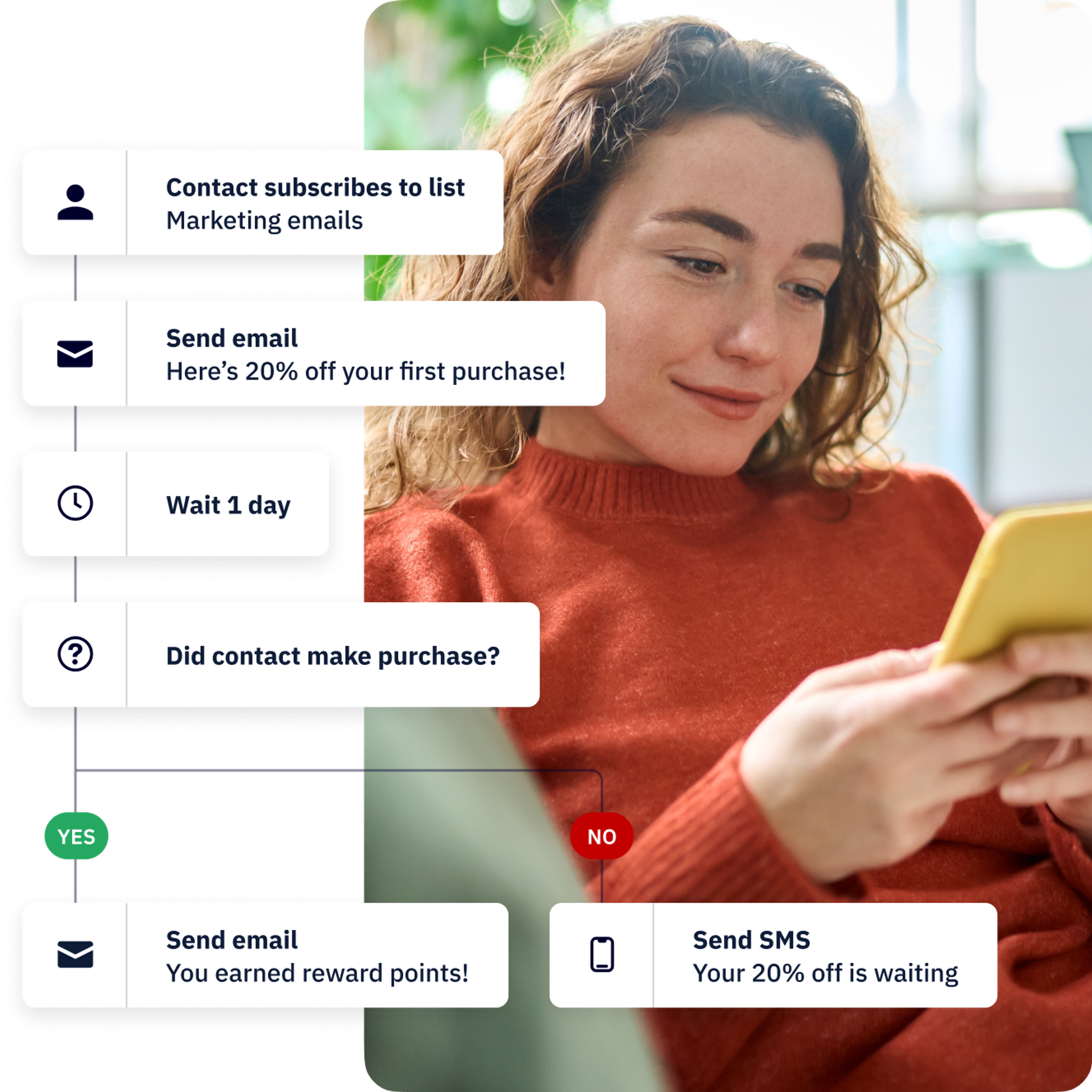 Encontre e converta novos clientes ao se conectar com eles onde estão mais engajados. Crie campanhas impactantes e transforme em crescimento com a plataforma de automação de marketing multicanal da ActiveCampaign.