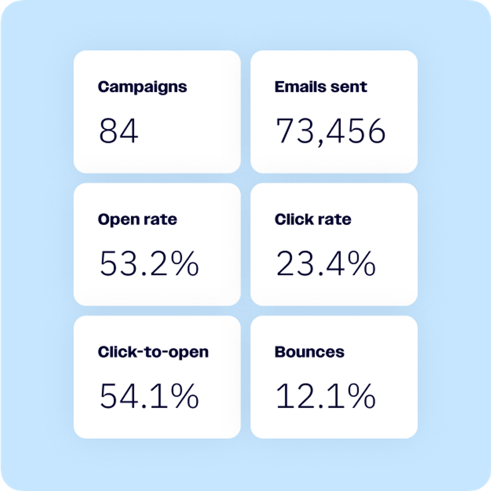 Acompanhe suas taxas de abertura e de cliques em tempo real através de nossas funcionalidades de relatório. O envio preditivo usa automaticamente esses dados para otimizar ainda mais os tempos de envio.