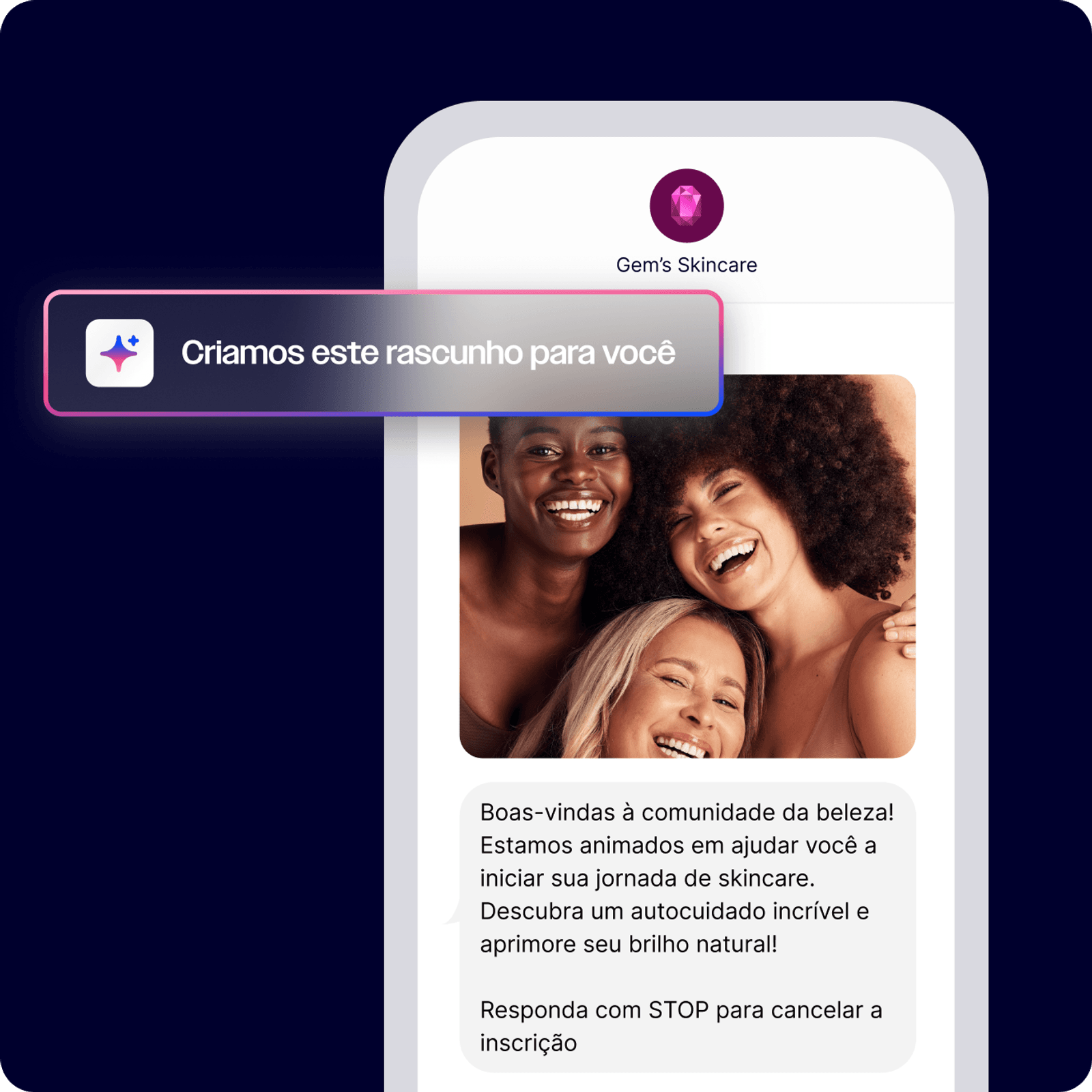 Crie um público customizado e personalize a mensagem com a ajuda da IA. Tenha ainda mais engajamento adicionando imagens.