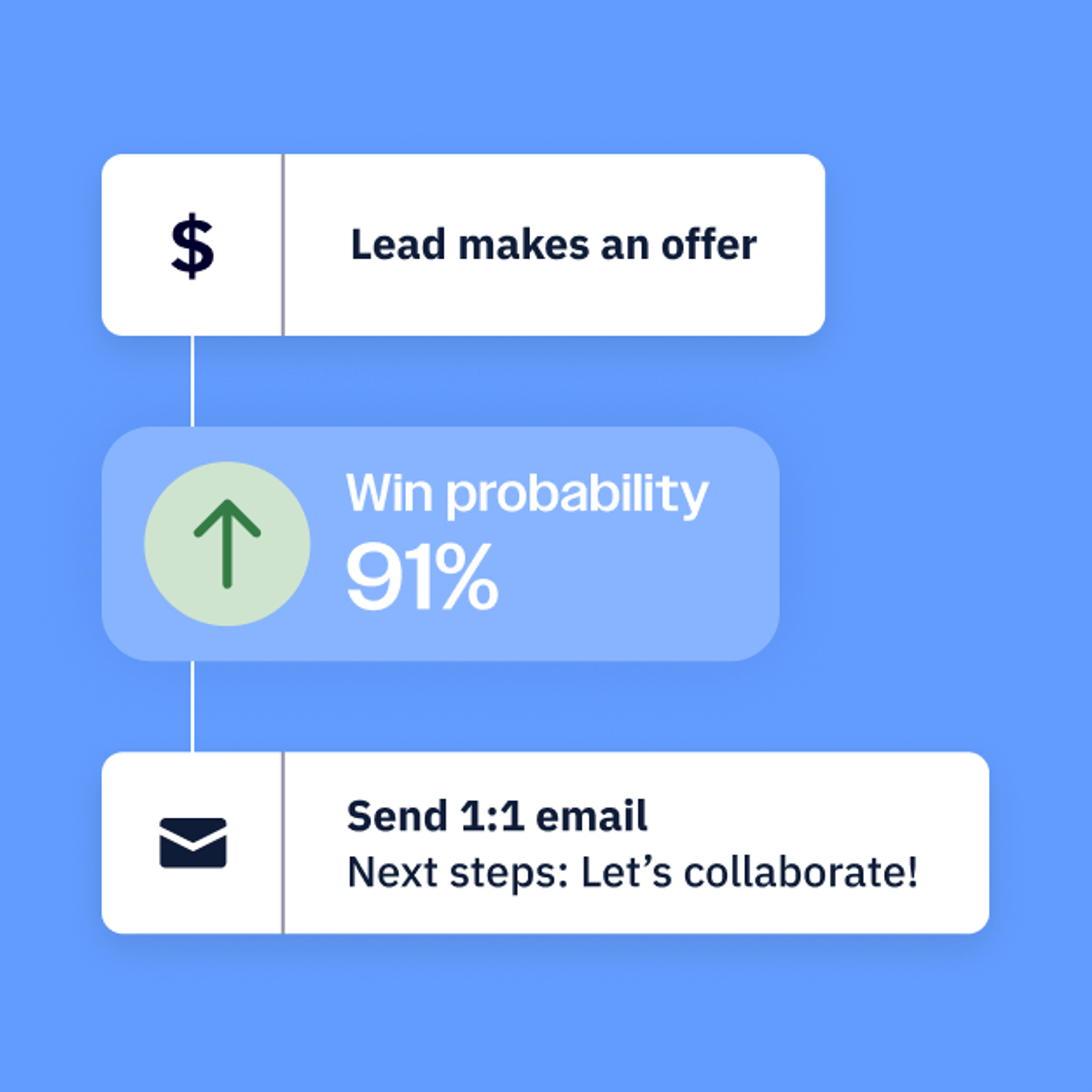 Nossa funcionalidade de probabilidade de ganho fornece atualizações em tempo real sobre a chance de fechamento de um negócio e atribui uma porcentagem a cada oportunidade, para que você possa se concentrar naquelas que contam.