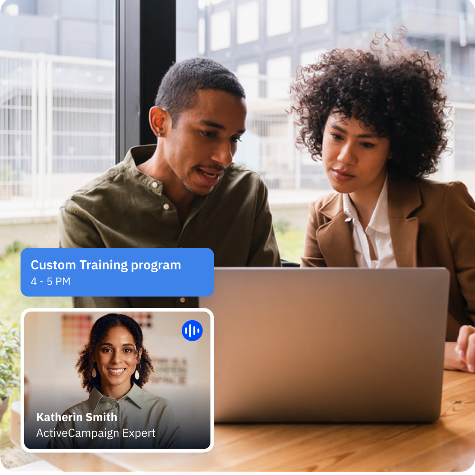 Com nosso programa de Treinamento personalizado, você poderá agendar um pacote de treinamento particular e personalizado com um especialista da ActiveCampaign para aprender a usar sua conta conforme os requisitos exclusivos de sua empresa.