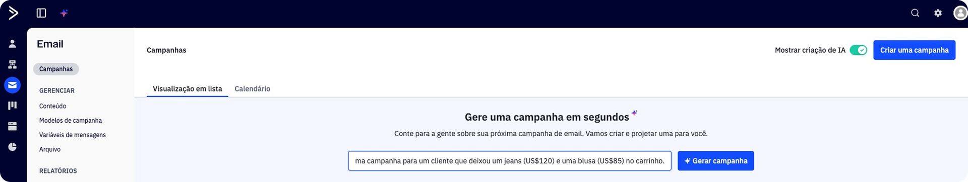 Criação inteligente de campanhas com IA: