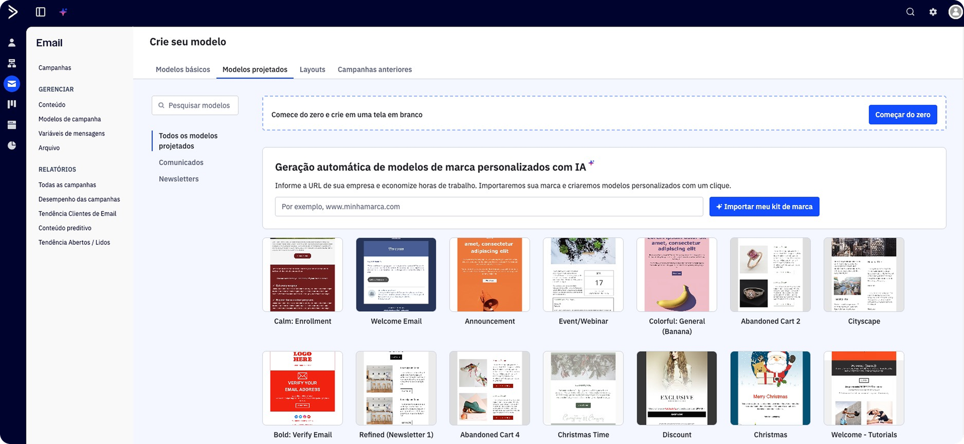 Modelos de email tradicionais resolviam o problema de ontem: como criar emails com aparência profissional sem ter habilidades de design. Mas o desafio de hoje é outro: como criar comunicações personalizadas e segmentadas por comportamento em grande escala sem que a carga de trabalho aumente de forma exponencial.